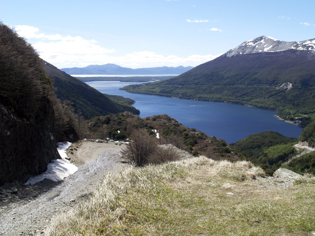 Après cette pause touristique, notre chauffeur nous dépose à la station service du village, où nous nous préparons à tendre le pouce. Moins de 10 minutes plus tard, un couple s’arrête. Ils sont de Rio Grande et se rendent à Ushuaïa pour manger avec leur fille, qui vit là-bas. On discute un peu sur la route, et ils s’arrêtent sur le chemin à un belvédère, dans le col de Garibaldi, pour nous montrer la vue splendide sur le lago Escondido, avec le lago Fagnando en fond.