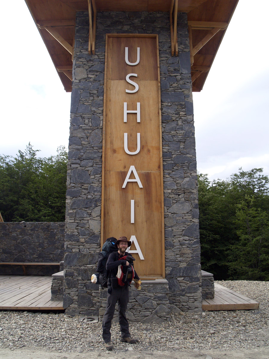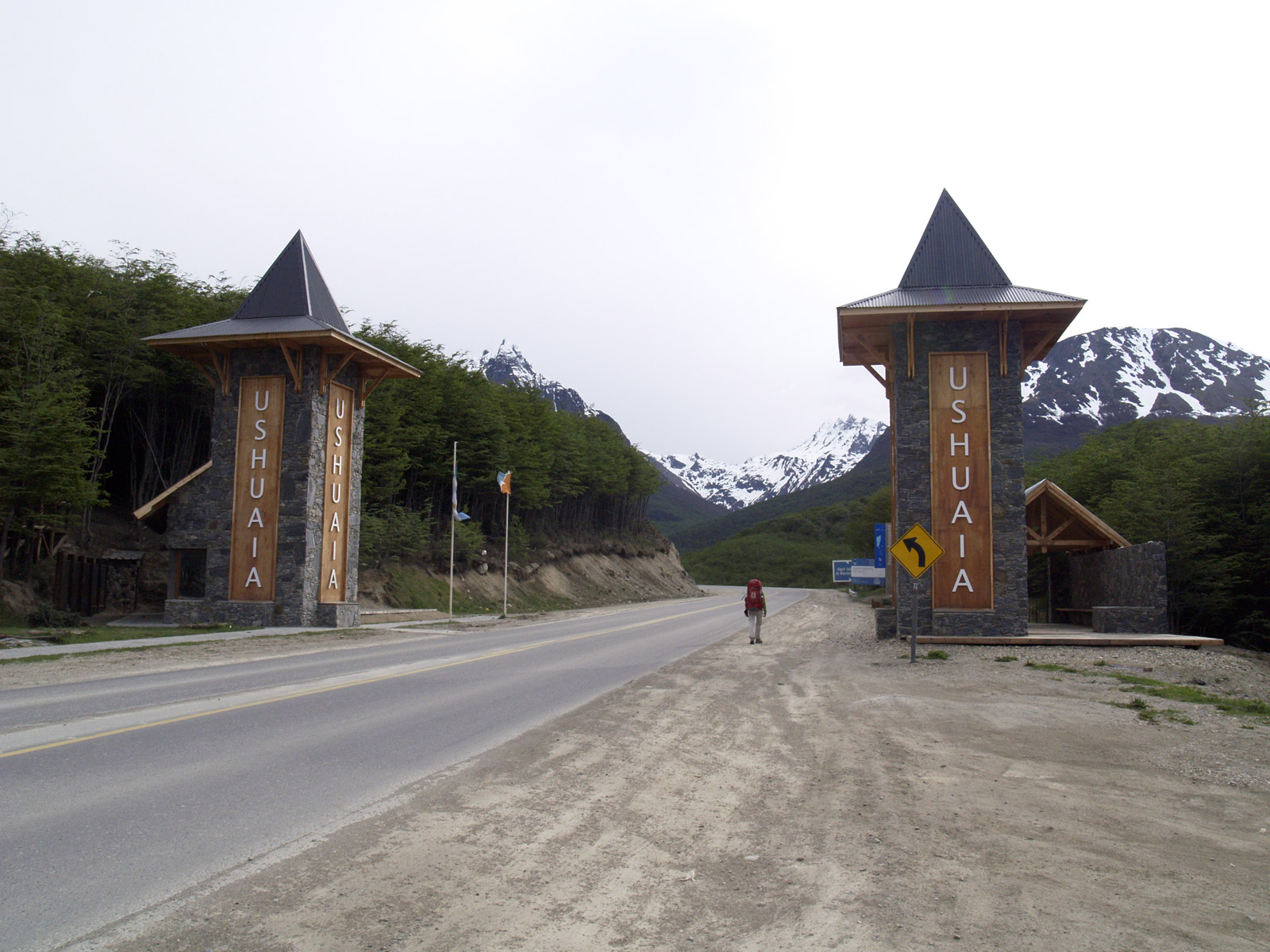 On déjeune et on remballe, et à 7 h 30, nous sommes en route pour l’entrée de la ville, où nous espérons trouver un chauffeur. Nous arrivons aux portes d’Ushuaïa a 8 h 30 et tendons le pouce. Vers 10 h, enfin, quelqu’un s’arrête et nous propose de nous emmener à Rio Grande.