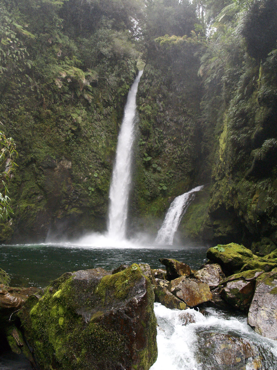De retour à la voiture, nous redescendons un peu au sud vers le sentier des cascades. Nous pique-niquons rapidement et partons faire la marche d’une heure et demie. C’est un sentier quasiment composé uniquement d’escaliers, ça casse un peu les pattes. Mais cela nous permet de voir de superbes cascades, ainsi que d’autres alerces. Nous revenons bien contents de notre balade.