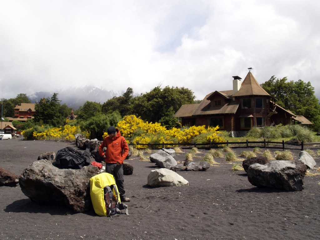 Nous quittons l’auberge de jeunesse où nous avons campé (pour 8 000 pesos par personne, en camping, ça fait mal…) et prenons le bus pour aller passer 2 jours à Petrohué, au bord du lac Todos los Santos. C’est le lac qu’il nous faut traverser si nous voulons passer en Argentine à pied. Nous allons voir ce que l’on peut nous dire au bureau du CONAF, mais nous sommes quasiment sûrs de ne plus faire ce parcours. Rien que la traversée en bateau coûte 22 000 pesos par personne. Il n’y a aucun autre moyen de se rendre de l’autre côté. En fait, il y a comme un monopole de l’affaire dans le coin. C’est le même propriétaire qui gère les traversées en bateau, l’hôtel de l’autre côté du lac, et les transports en bus après la traversée. Et cela nous dérange. D’autant plus que, même s’ils ont le monopole, ils n’ont pas été en mesure de nous dire s’il était possible de camper sur les 23 kilomètres qui séparent l’extrémité du lac et la frontière argentine. Vu les horaires, il nous serait impossible d’atteindre la frontière dans la journée, alors sans infos sur le camping, cela nous paraît un peu compliqué. Et l’agence refuse de vendre des billets de bus pour se rendre uniquement à la frontière après la traversée. Soit on paye pour l’intégralité du voyage touristique, soit Petrohué – Bariloché en bateau – bus – bateau – bus et re-bateau, soit on ne fait que la traversée du lac Todos los Santos.