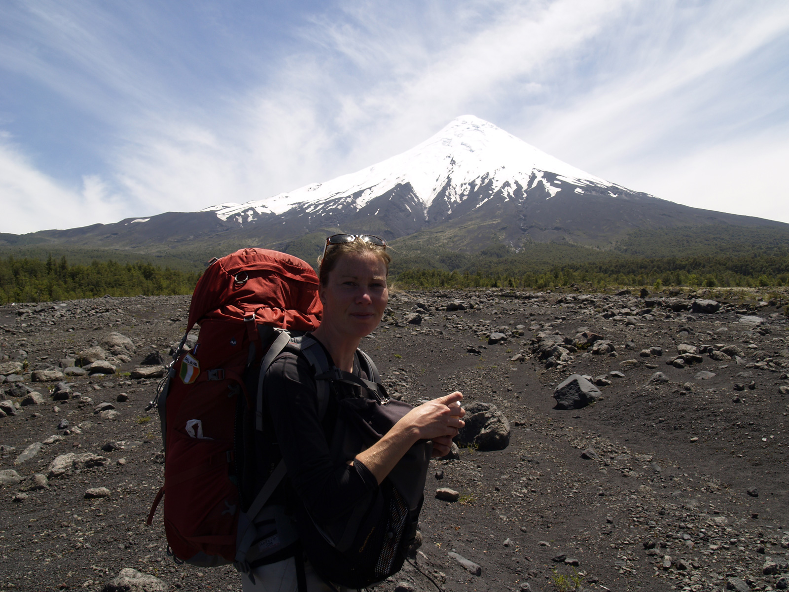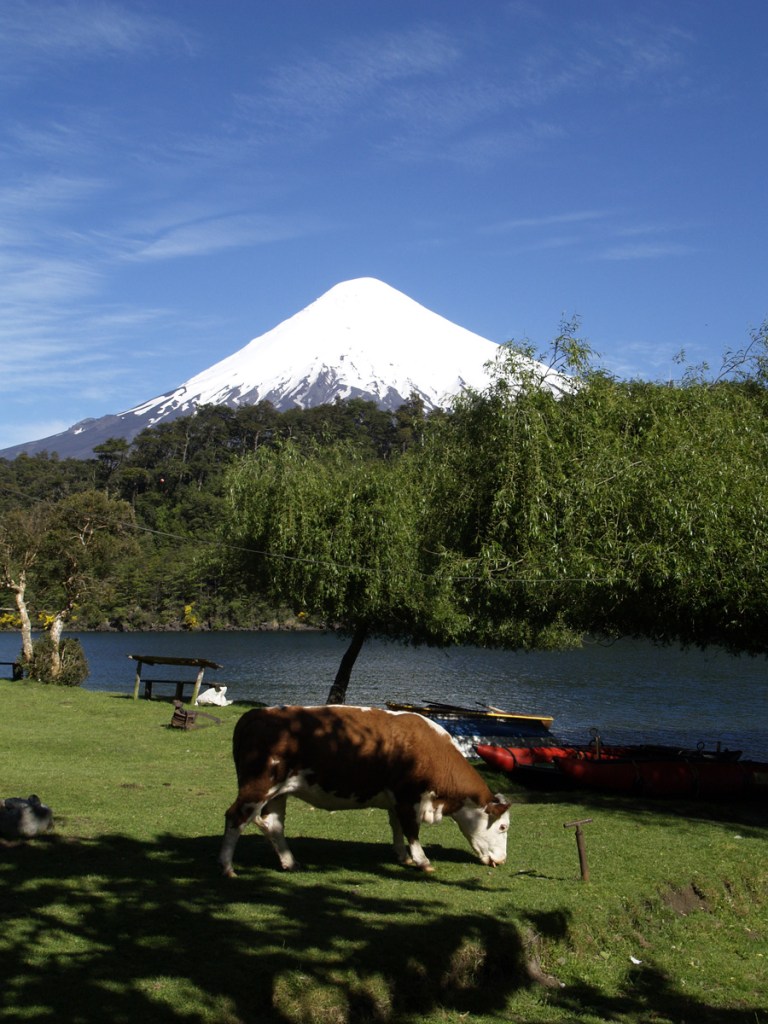 Le réveil sonne à 8 h, et en sortant de la tente, surprise : grand ciel bleu ! Nous avons vue sur la pointe du volcan Osorno, et sur toutes les montagnes qui nous entourent et que nous n’avions pas vues jusque-là.