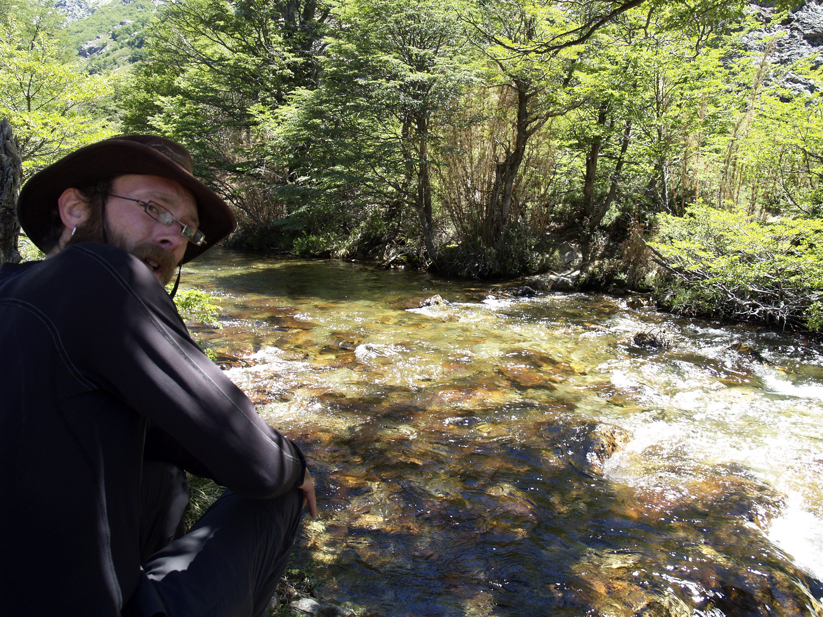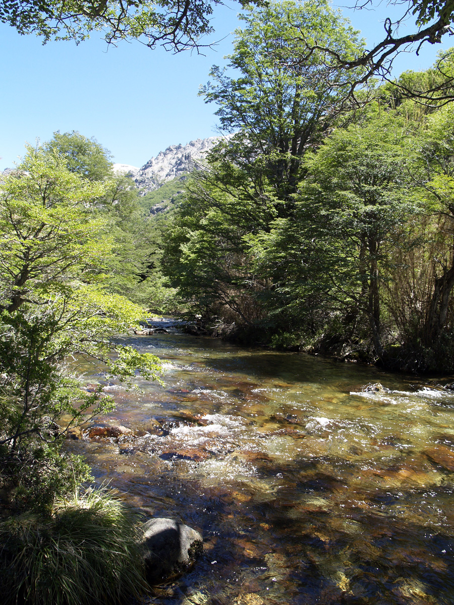 La suite est plus tranquille, voire un peu ennuyeuse. Dans les bois, nous ne voyons rien, et les paysages sont de toute façon beaucoup moins impressionnants qu’hier. Après une pause déjeuner au bord de la rivière, nous reprenons le chemin, plus ou moins plat, jusqu’au bout du sentier, à l’intersection de la route de gravier. De là, nous marchons jusqu’à une autre intersection où nous sommes pris en stop jusqu’à la route principale. Nous prenons le bus pour Bariloche. Cette deuxième journée nous aura beaucoup moins marqué. Par contre, il fait un temps magnifique, et c’est vraiment agréable de se promener dans ces conditions.