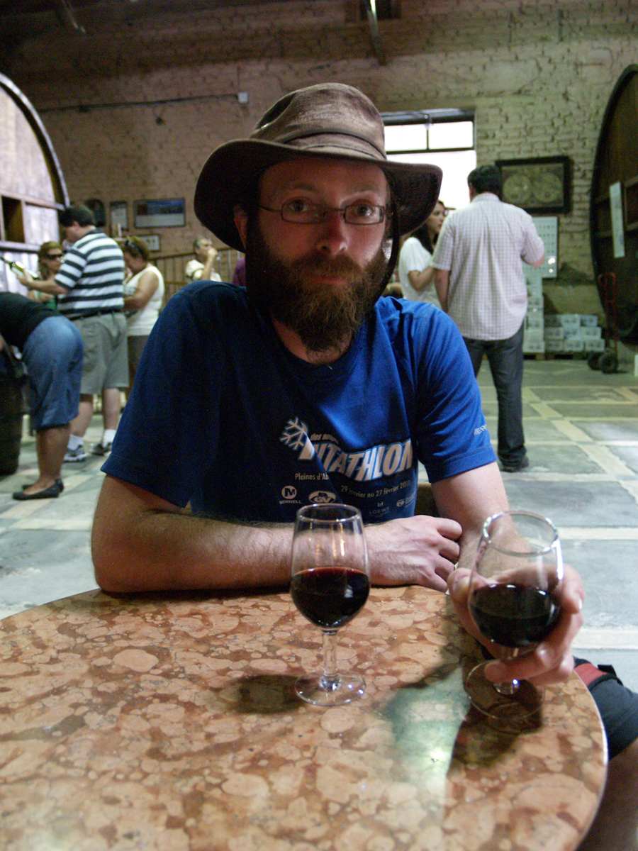 Après le repas, nous réfléchissons à ce que nous allons faire, et décidons d’aller prendre un café et de rentrer à Mendoza. Nous n’avons visité qu’une bodega, mais nous n’avons pas le budget, ni l’envie, de faire plus. Toutes les visites et dégustations sont payantes, il faut donc avoir prévu une coquette somme si on veut visiter toutes les propriétés, ce qui n’est pas notre cas. Nous ne sommes pas non plus venus dans l’idée d’acheter des caisses de vin, donc cela limite un peu l’intérêt de la visite. En plus, on est crevé, et même pour la promenade à vélo, ce n’est pas terrible. Nous rentrons donc, et allons nous faire une soirée tranquille à l’auberge et nous coucher tôt. Nous en avons besoin. Mais on se boit tout de même un bon petit verre de Syrah avec le repas.