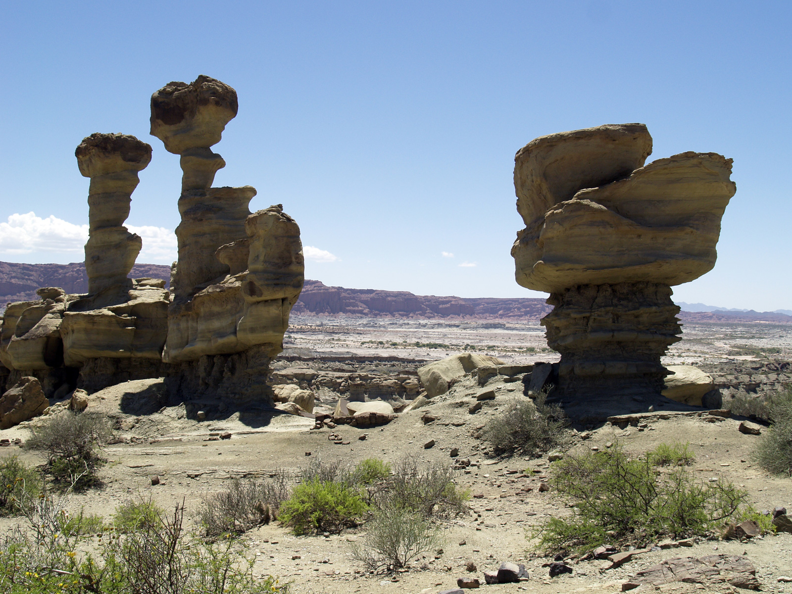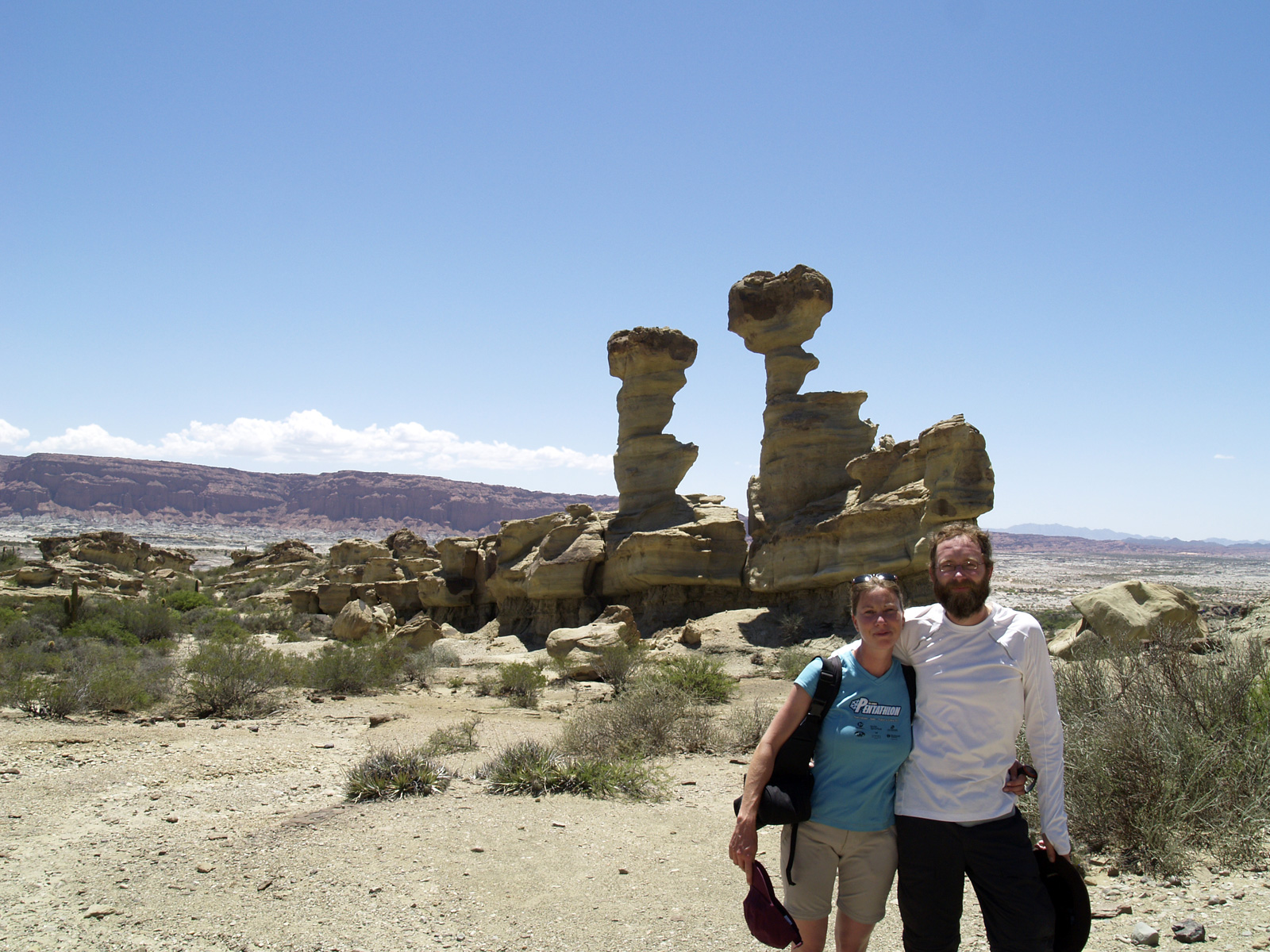 Les formations rocheuses sont vraiment étonnantes, et portent des noms qui sons censés refléter les formes : le sous-marin ou le champignon, par exemple. Nous voyons nos premiers vrais cactus, les grands, comme dans Lucky Luke, avec des fleurs au bout pour certains, et expérimentons nos premières chaleurs désertiques. En chemin, nous croisons quelques guanacos, une espèce de tatou, et nous parvenons même à observer quelques condors.