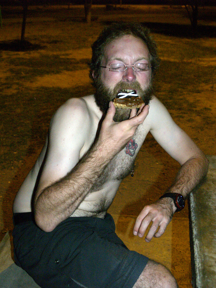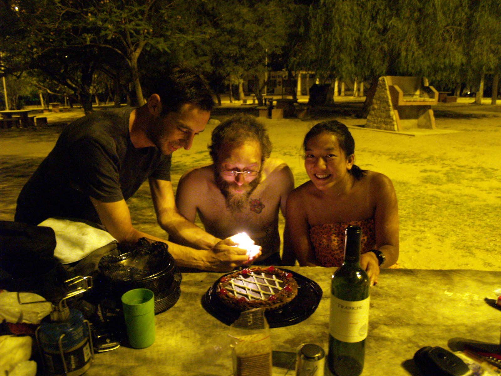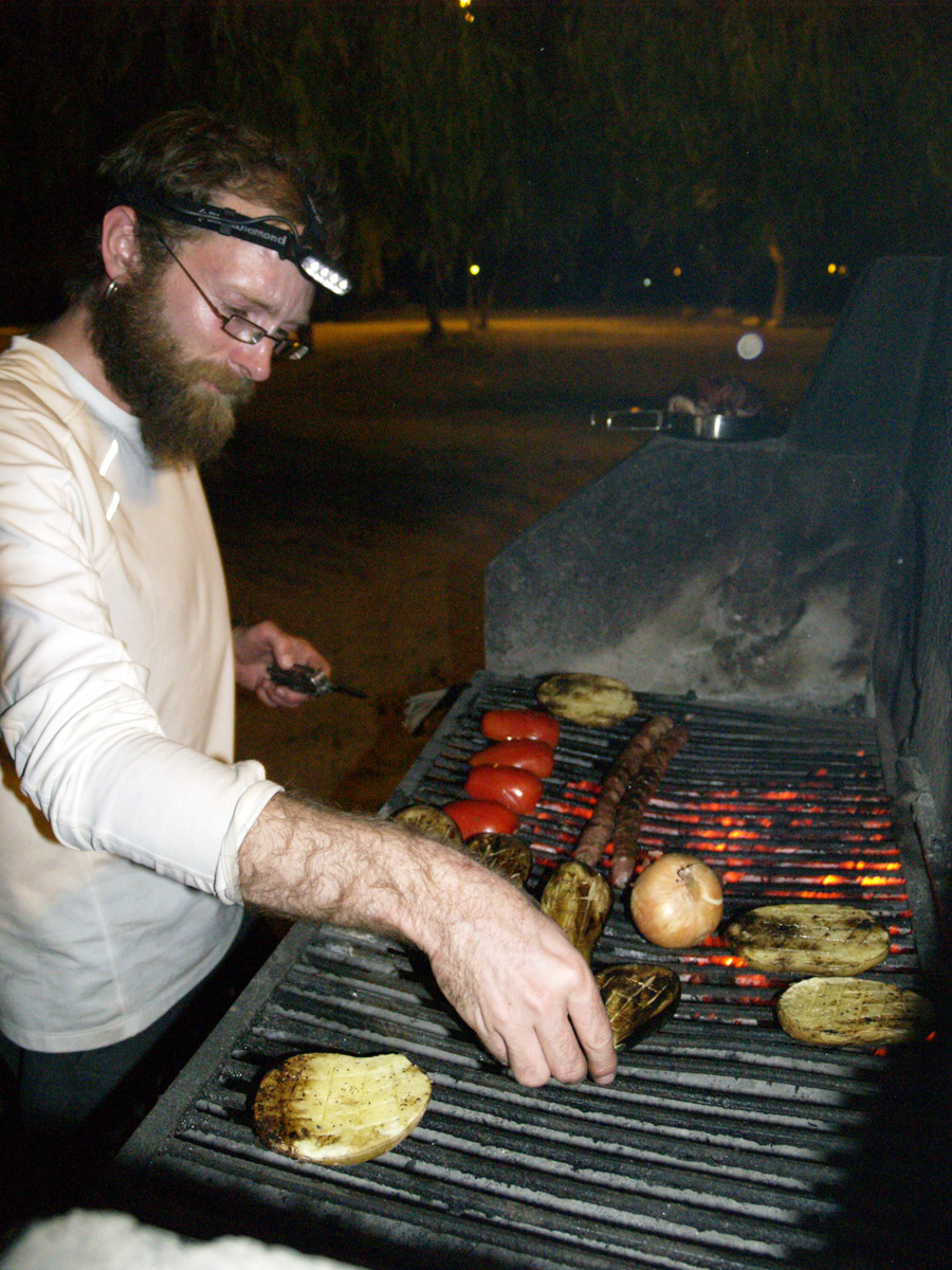 Nous nous sommes couchés à quasiment 4 h du matin, après avoir cherché un endroit où dormir, fait les courses et nous être régalés d’un succulent asado préparé par les soins de l’homme du jour.
