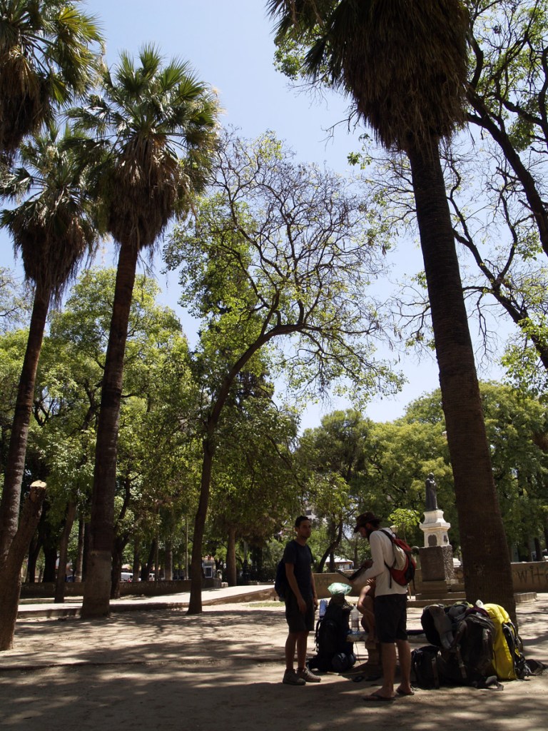 La journée passe tranquillement, sous une chaleur accablante. La température stagne autour de 36 degrés à l’ombre toute la journée. Nous nous promenons un peu en ville, allons manger un morceau vers 15 h 30, retournons nous asseoir sur la place, mais l’autre cette fois. Nous attendons l’heure de nous rendre à la gare routière. Anh et Bruno partent à minuit et quart pour San Juan. De notre côté, nous nous dirigeons vers Tucumán, au nord, à 23 h 30. Finalement, nous n’irons pas à Córdoba. Nous avons déjà vu beaucoup de villes, et il nous faut avancer. Córdoba nous obligerait à redescendre au sud. Nous irons donc passer Noël à Tafí del Valle, une oasis dans le désert. Il devrait y faire un peu moins chaud, et il y a pas mal de rando à faire aux alentours.