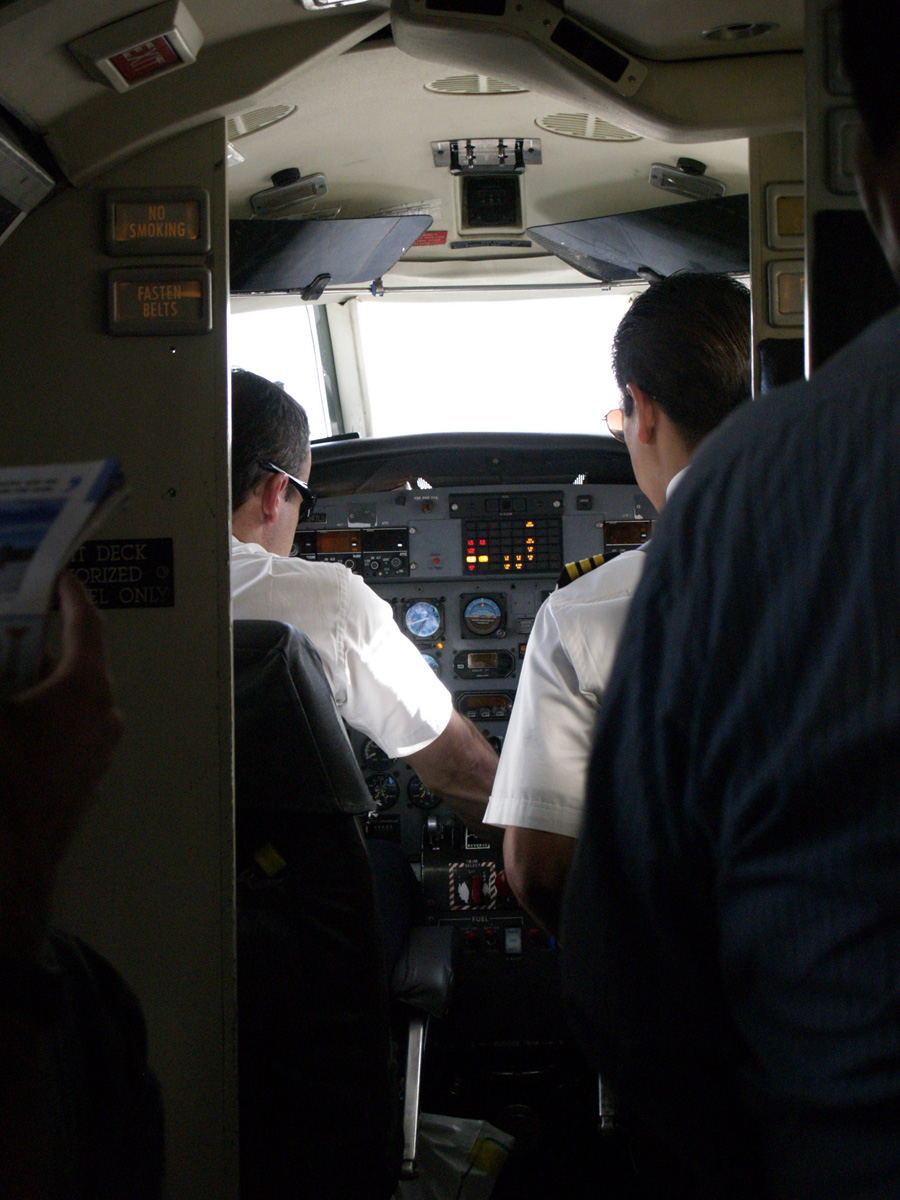 Une fois mon énervement passé (le temps d’acceptation n’a tout de même pas été trop long), nous sommes à l’aéroport et il n’y a personne au guichet de la compagnie. Truc louche : notre vol n’apparaît pas à l’écran. Bon, vous me direz, les bogues, ça arrive. Alors nous ne nous inquiétons pas et allons manger un bout à la cafét’ de l’aéroport. Après manger, nous redescendons. Notre vol n’est toujours pas affiché. Cette fois, il y a quelqu’un au guichet, nous allons donc nous renseigner. Réponse de la dame : mais c’est normal, votre vol a été annulé, vous partez sur celui de 17 h ! GÉNIAL ! Le mieux, c’est que la compagnie aérienne a communiqué avec l’agence qui nous a vendu les vols (l’agence de l’auberge), mais que cette dernière n’a pas pris la peine de nous prévenir… Ça fait deux fois, hein ! Il y a deux jours, l’auberge n’avait pas non plus jugé utile de nous dire que notre excursion à pied était bien réservée, le gars de l’agence leur avait téléphoné…