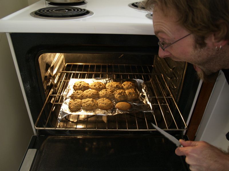 En rentrant, on a repris les bonnes habitudes : j’ai fait des cookies. Mais ça a foiré, je crois que je ne sais plus y faire. Selon l’expert, ils sont bons aussi comme ça, C’est sûr ça n’a pas eu l’air de le déranger. Mais quand même, il faut que je règle le problème…