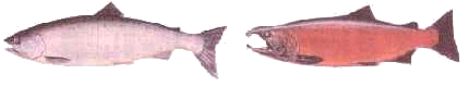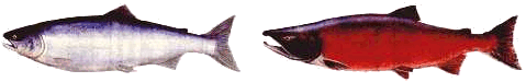C’est l’archétype du saumon avec ses sauts spectaculaires au dessus des chutes d’eau. Du reste « Sockeye » signifie « Poisson des poissons » en indien Salish. Les reds passent eux aussi un à deux ans en eau douce pour une durée de vie de 4 à 8 ans. Ils passent donc la majeure partie de leur vie en mer.