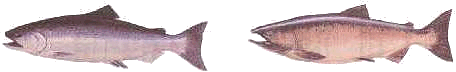 C’est le plus petit des saumons Pacifique car il atteint sa maturité sexuelle à deux ans. Les pinks migrent en mer dès leur naissance. Il est très facile à reconnaître car il développe une bosse dès son entrée en eau douce (en anglais, humpy signifie « bossu »). Ce cycle particulier fait que dans la plupart des rivières, les pinks ne retournent sur leur lieux de naissance pour se reproduire que tous les deux ans. Curieusement, il y a des rivières paires et des rivières impaires !