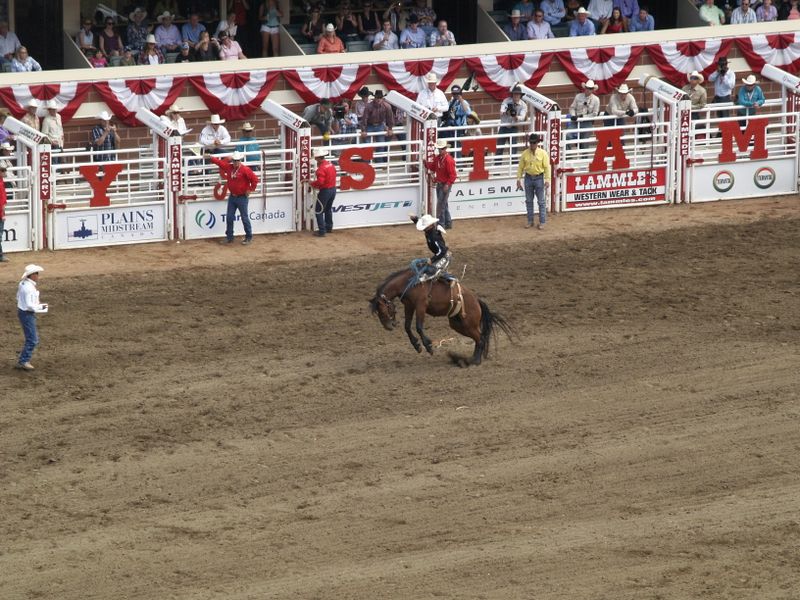 C’est le cri de guerre du moment. Il retentit partout dans la ville. Eh oui, c’est la période du Stampede ! Alors, le Stampede, c’est quoi ? Il s’agit du plus grand événement extérieur au monde (eh non, ils ne doutent de rien, ici). C’est en fait un festival de cowboys qui dure 10 jours. Le principal événement de ce festival, ce sont les différents rodéos. Mais il y a aussi des courses de chariot, des spectacles en tout genre, des feux d’artifices, des ateliers culinaires, des petits déjeuners de pancakes tous les matins, bref, il y a de quoi faire.