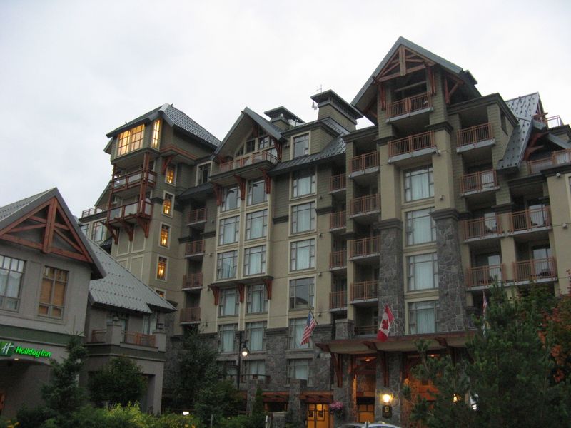 Nous arrivons à Whistler vers 15 h, et nous nous préparons à vivre dans le luxe pendant les trois prochains jours. Cela commence immédiatement, avec le valet de l’hôtel, qui nous emmène la voiture au parking, et qui nous porte les valises à la chambre sur un chariot, la grosse classe ! On ne vous cache pas que nous ne sommes pas trop à l’aise, ce n’est pas comme si nous avions l’habitude de ce genre de choses, hi hi. Et cela ne fait que commencer, notre arrivée dans le suite nous transporte dans un autre monde. Trois chambres (chacune avec son balcon et sa salle de bains), une cuisine (avec tous les électros et bar), salon immense avec écran plasma énorme. Ça change du motel !