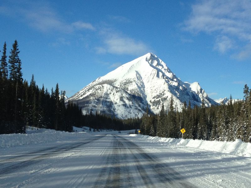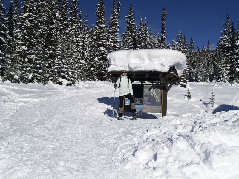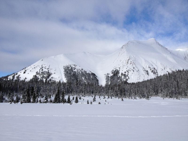 Et pour éliminer, parce que c’est bien gentil de se gaver, mais on ne peut pas faire que ça, nous avons passé le dimanche à la montagne. Après la grosse chute de neige du milieu de semaine dernière, il ne fallait vraiment pas manquer ça. Nous nous sommes donc rendus dans un coin des Kananaskis qu’on ne connaissait pas pour aller faire un peu de raquettes. Et ça valait le coup. On en a pris plein les yeux !