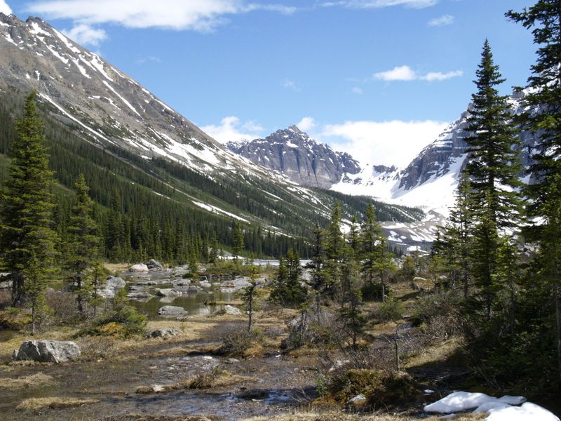 Après les retrouvailles avec Olivier, qui nous a raconté ses déboires de cyclotourisme et de randonnée (le pauvre ne peut encore faire aucune des randos qui l’intéressent, il y a encore trop de neige en altitude), nous sommes tous partis marcher derrière le lac Moraine, aux Consolation lakes.