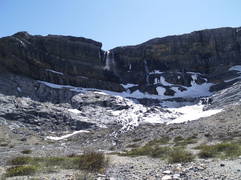 Le lendemain, nous avons roulé jusqu’au lac Bow pour faire une marche que j’avais déjà repérée : les Bow glacier falls, là où nait la rivière Bow, qui traverse Canmore, et Calgary, entre autres. Et cette fois, nous n’avons pas été déçus. Enfin, nous avons apprécié la vue, sans être sans arrêt dans les sapins, et quelle vue ! Le lac Bow, turquoise, la végétation verte fluo, la rivière émeraude translucide, les glaciers, les moraines… Cela avait des airs de Torres del Paine. C’était franchement magnifique, et nous en avons pris plein les yeux. Pas sûr que les photos rendent bien la réalité, tellement les couleurs étaient éblouissantes. Nous sommes donc revenus enchantés.