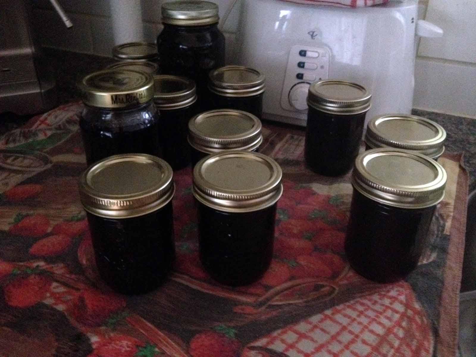 Il y a quelques semaines, Mélanie avait terminé le dernier pot de confiture de l’année 2012. Il était donc temps que je me remette à cuire quelques kilos de fruits. J’ai donc rangé ma pelle, mon seau, enfilé mon tablier de forgeron Motörhead et je me suis mis à la cuisson. Les premiers pots de confiture de fraises refroidissaient, j’en profitais pour sceller à la paraffine les premiers pots de bleuets cuits la veille. Au total, nous avons 18 pots… Pas de quoi tenir un an !!
