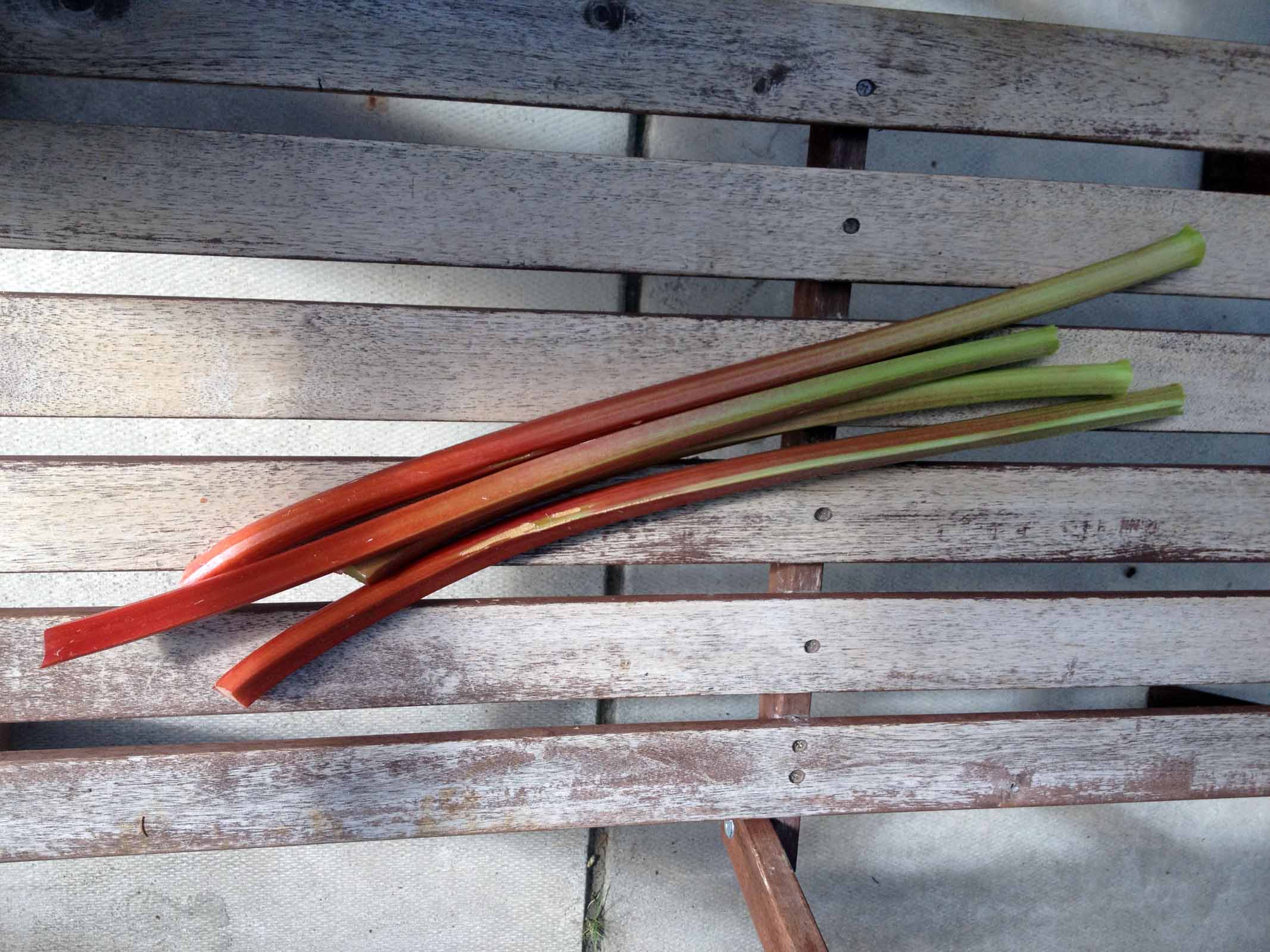 Rassasiés, nous nous laissons dorer la couenne quelques instants sous le soleil. On a presque l’impression d’être en vacances !! Je sais, il est impoli de garder son couvre-chef à table mais là, sous la verrière, j’ai l’impression de cramer plus que dorer. La farniente a assez duré, nous nous activons à récolter la rhubarbe (fournie avec la maison). Quatre tiges valent la peine d’être coupées. Récoltées, épluchées, lavées, débitées et congelées ! La rhubarbe, c’est la spécialité de Mélanie. J’espère bientôt manger une tarte (avec pâte) dont elle a le secret !