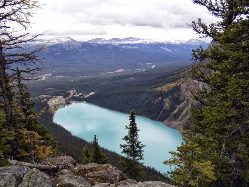 Un an et demi plus tard, nous y sommes donc retournés pour faire la boucle complète du lac Louise, en passant par la plaine des six glaciers et le lac Agnès. Et nous n’avons pas regretté ce choix ! Il faisait vraiment beau, et l’avancée dans la saison fait que les sentiers étaient beaucoup moins fréquentés qu’il y a quelques semaines, ce qui est d’autant plus agréable. Nous aurons donc eu l’occasion de voir le lac Louise sous un autre angle, qui lui donne vraiment le côté majestueux que nous ne lui avons jamais trouvé depuis l’hôtel, là où le rivage est submergé de touristes en permanence.