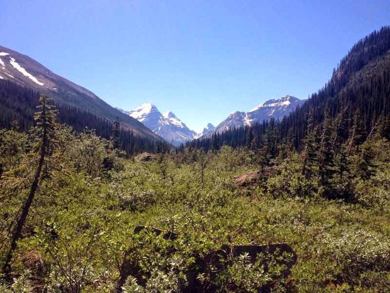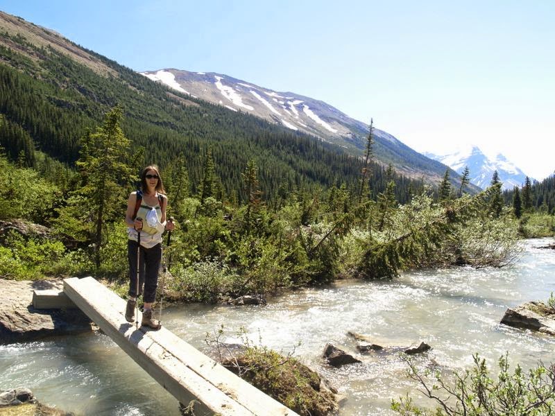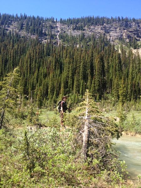 Nous avions remarqué dans notre guide de randonnées (Don’t waste your time in the Rockies) qu’il y avait une marche à faire près du lac Wapta. Ce sentier n’est pas entretenu par Parcs Canada. Nous sortons donc des sentiers battus et effectivement, nous ne croiserons que 3 ou 4 personnes sur les 21 kms de la marche.