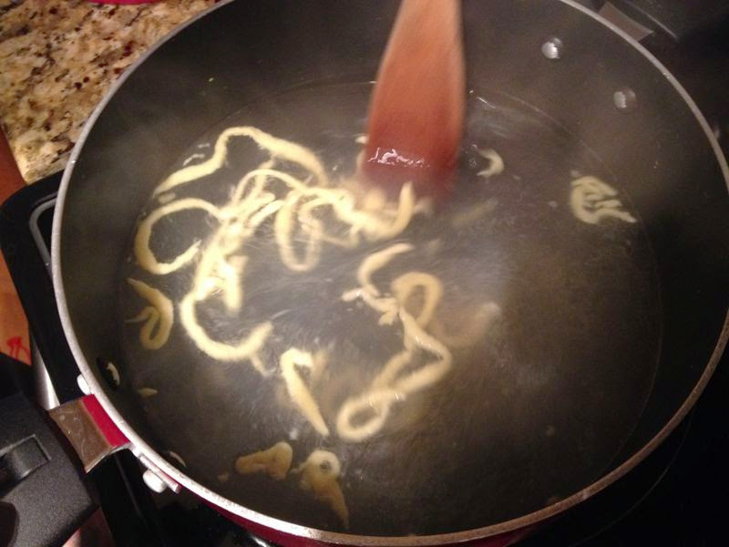 1) Mélanger 400 g de farine, 4 œufs, 225 ml d’eau, 1 cuiller à thé de sel.