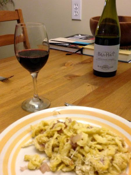 L’an dernier, lorsque nous avons accueilli Steffen, il nous a fait découvrir un certain nombre de plats typiques de chez lui. Il va sans dire qu’étant Allemand, ce qu’il nous a fait goûter était souvent à base de chou. Mais pas toujours! Un soir, Il nous avait fait des galettes de pommes de terre et oignons accompagnés d’un compote de pommes; un autre soir, des spaetzle maison, et avait donné la recette à Stéphane. Après un long moment d’hésitation, ce dernier a décidé de se lancer!