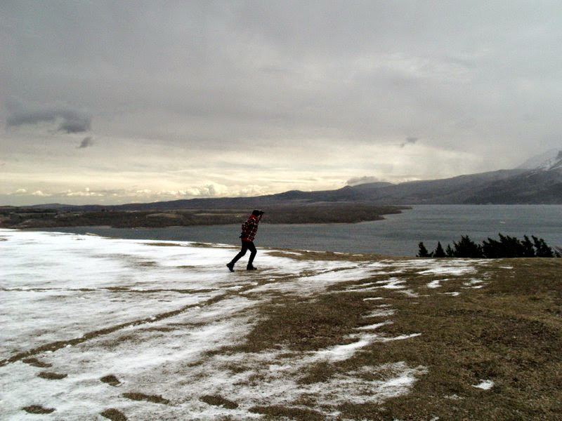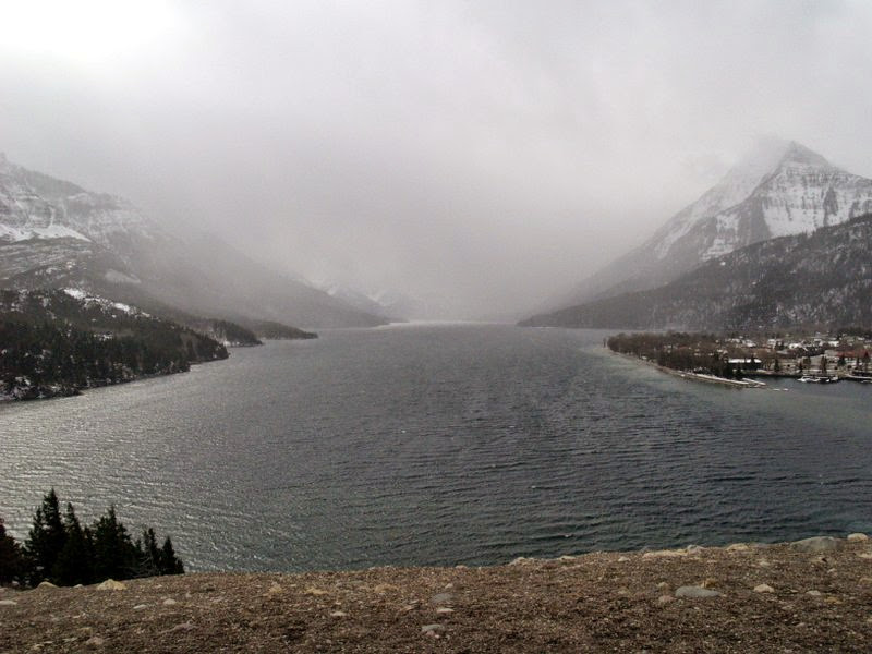 Nous sommes arrivés à Waterton dans le noir ou presque, et avons trouvé les emplacements de camping gratuits hors saison. Oui, parce que Pâques, c’est hors saison, et tout est fermé dans le parc. Nous le savions, mais comptions tout de même pouvoir faire quelques petites randos et voir un paysage d’hiver dans ce parc que nous n’avons vu que l’été. Raté. pas de paysage d’hiver (plus de neige), mais un froid polaire en raison du vent glacial qui souffle en permanence dans cette région. Et comme tout est fermé, personne n’est là pour nous renseigner sur les éventuelles activités. Vous l’aurez compris, on n’est pas restés.