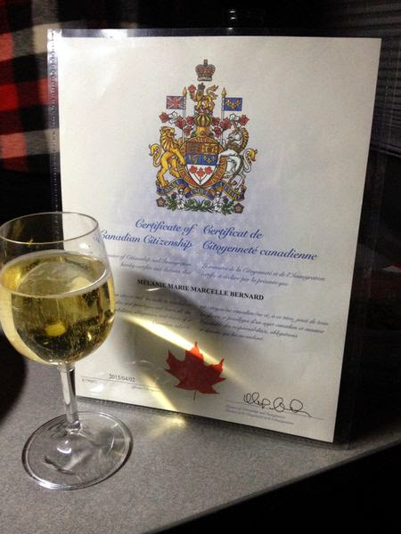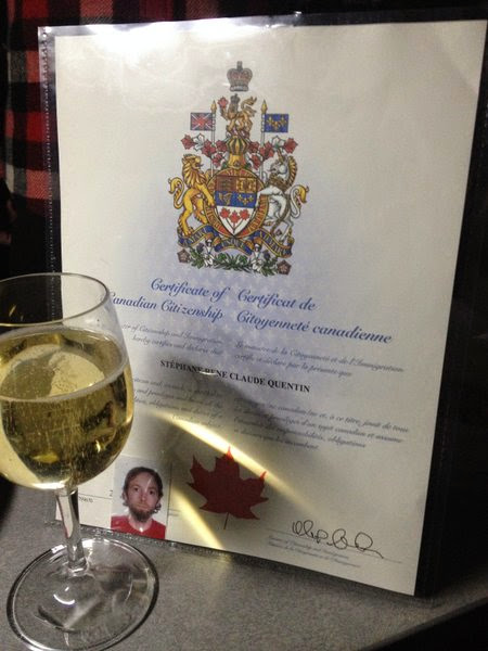 Enfin… Après trois ans de démarches administratives, puis d’attente, puis de démarches administratives, puis d’attente, ça y est : nous sommes citoyens canadiens! Il nous aura fallu faire preuve de patience pour finalement y parvenir, mais c’est fait, nous avons assisté à la cérémonie de citoyenneté, dernière étape du processus, jeudi dernier. Il ne s’agissait clairement que d’une formalité, une « remise de diplôme » pendant laquelle nous devions prêter allégeance à la Reine et chanter l’hymne national. Ceci dit, je me suis moi-même étonnée de ressentir autant d’émotion le moment venu, moi qui pensais que le fait de devenir Canadienne, ou plutôt Franco-Canadienne, ne me ferait pas grand-chose. En fait, je me suis rendue compte en écoutant le juge nous expliquer ce que signifiait devenir Canadien que cela avait une réelle importance à mes yeux. Nous avons choisi de demander cette nationalité, après avoir vécu plusieurs années dans notre pays d’adoption, et cette démarche étant volontaire et réfléchie, elle en est d’autant plus importante. J’en ai pris conscience la semaine dernière et ai trouvé le moment particulièrement émouvant.