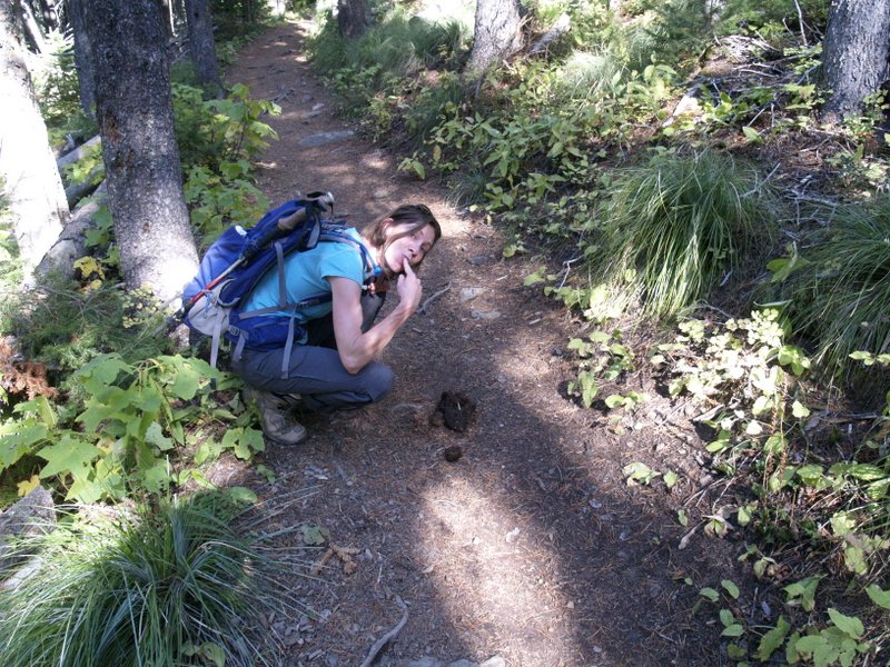 Nous n’avons pas changé notre itinéraire et, après Yellowstone, nous nous sommes arrêtés à Waterton Lake national park, au sud de l’Alberta. là encore, ce lieu nous enchante toujours autant. Et pour le coup, ce séjour a été fort en émotions. N’ayant encore jamais eu vraiment l’occasion de randonner dans le parc, nous avions décidé de faire une petite marche pendant que nos visiteurs s’offraient une croisière sur le lac (qu’il nous faudra faire aussi, parce qu’il semble que nous ayons raté quelque chose). Dès le départ, nous avons été mis en situation : une énorme crotte d’ours (je confirme au goût que c’était du grizzly) nous barrait la route à peine 1 km après le parking. C’était un peu sec, ça ne datait pas du jour, nous continuons donc. Mais quand même, nous étions seuls sur le sentier, alors, moi qui n’ai pas trop l’habitude de faire ça, je peux vous dire que j’ai crié, chanté et frappait des mains, et que j’ai tiré les vers du nez à Stéphane pour qu’il parle (il m’en tient encore rigueur d’ailleurs). Et bien malgré cela, alors que nous étions pratiquement arrivés au bout, nous nous sommes écartés un peu du sentier pour aller admirer une toute jolie cascade. Stéphane prenait des photos, tranquillement, quand soudain nous nous sommes regardés tous les deux : malgré le bruit assourdissant de la cascade, nous avons tous les deux entendu un énorme grognement! Bon, ben là, heu, comment dire… On ne savait pas vraiment trop quoi faire. Alors j’ai crié et frappé des mains de plus belle, Stéphane a mis la main sur son bear spray, doigt sur la gâchette, et puis nous sommes sortis de notre recoin tout doucement. Et on a fait demi-tour. Sans demander notre reste. Bon, raconté comme ça, ça peut faire rigoler. Ceci dit, moi, j’ai eu une belle piqûre de rappel : on vit au Canada, et il y a de grosses bêtes dans les bois. Et le fait de l’avoir juste entendue, mais pas vue, m’a fait encore plus peur. Et rien que d’y repenser là, ben je me sens pas bien à l’aise. Au final, de la rando en elle-même, nous n’avons que peu de souvenirs, nous avons été dans le bois tout le temps. Mais ça avait l’air joli, derrière 🙂