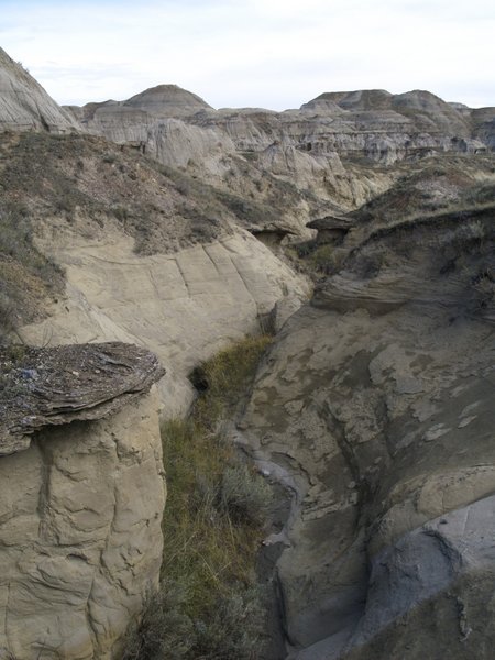 Nous avons donc repris la route de Canmore après toutes ces péripéties, et de belles images plein la tête. Mais pour une semaine seulement. Le week-end suivant, hop, nous voilà repartis. Pour une nouvelle destination, même pour nous cette fois : Dinosaur provincial park. Nous avions déjà tâtonné le sujet à Drumheller et au Royal Tyrell Museum il y a deux ans et avions eu une petite idée de ce qu’étaient les badlands. Mais là, c’est vraiment THE PLACE TO BE! Si vous êtes fan de dinosaures, de fossiles, de formations géologiques étonnantes et colorées, c’est là qu’il faut aller. C’est vraiment magnifique, et nous avons pris beaucoup de plaisir à découvrir ce paysage, très différent selon l’heure de la journée et l’inclinaison du soleil. On se serait cru dans un autre monde. Et pour encore plus de dépaysement, nous vous conseillons le « comfort camping », comprenez camping sans les désagréments du camping. Une expérience authentique, offerte ici, en Alberta! 😉