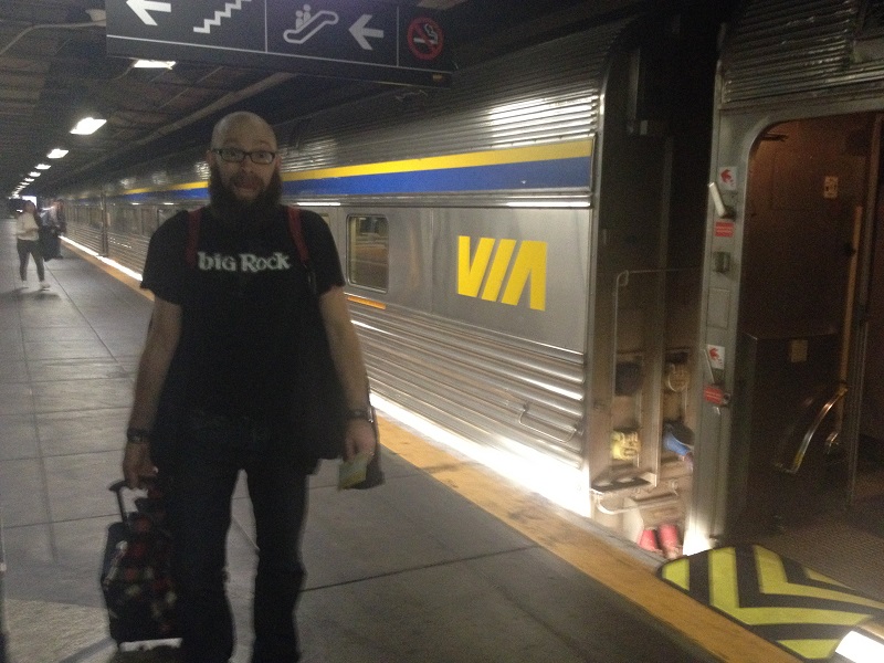 Est ensuite venu l’un des moments les plus excitants du voyage : nous avons pris le train au Canada. Je sais, cela peut faire rire. Mais cela a été si compliqué que nous avons eu l’impression d’accomplir un exploit. Pour faire court, nous avions droit à 50 % de rabais sur un voyage en train, gracieusement offert par Via Rail (ou le gouvernement du Canada, allez savoir) pour avoir réussi à devenir citoyens canadiens. Qu’à cela ne tienne, c’est l’occasion d’en profiter. Nous n’allions tout de même pas la manquer. Le problème, c’est que dans l’Ouest, à part des trains de marchandises, il n’y a pas grand choix. Nous avons donc voulu profiter de cette offre au Québec. Et nous avons finalement réussi, après quelques péripéties d’annulation de train, puis de demande de congé, puis de modification de billets. Bref, le train n’a absolument RIEN d’excitant en soi, mais au moins, on l’aura pris une fois, et ce sera probablement la seule. Super, non?