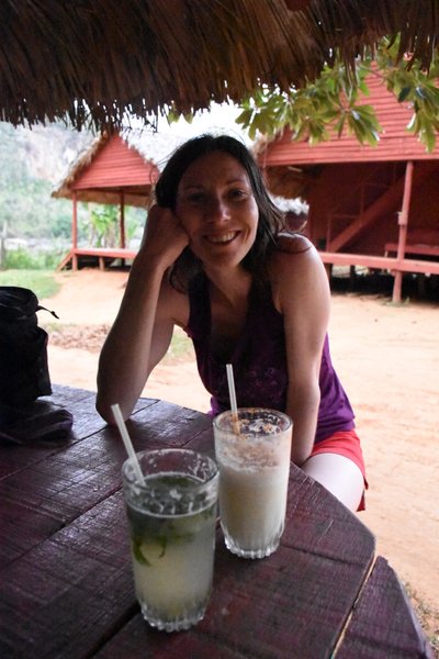 Il nous faut un peu de temps pour digérer, puis nous décidons d’aller nous promener un peu dans la campagne environnante. Ce sont principalement des terres agricoles, et en passant d’un chemin de terre à un autre, nous arrivons dans une espèce de ferme « bio » à moitié touristique. Le propriétaire ouvre son terrain gratuitement : on peut profiter de grottes, de murs d’escalades, car il y a des mogotes, donc du relief. En échange, bien sûr il vend ses cigares, des boissons dans un petit bar très agréable… rien de tel en fin de journée que de déguster un petit cocktail sous les palmiers.