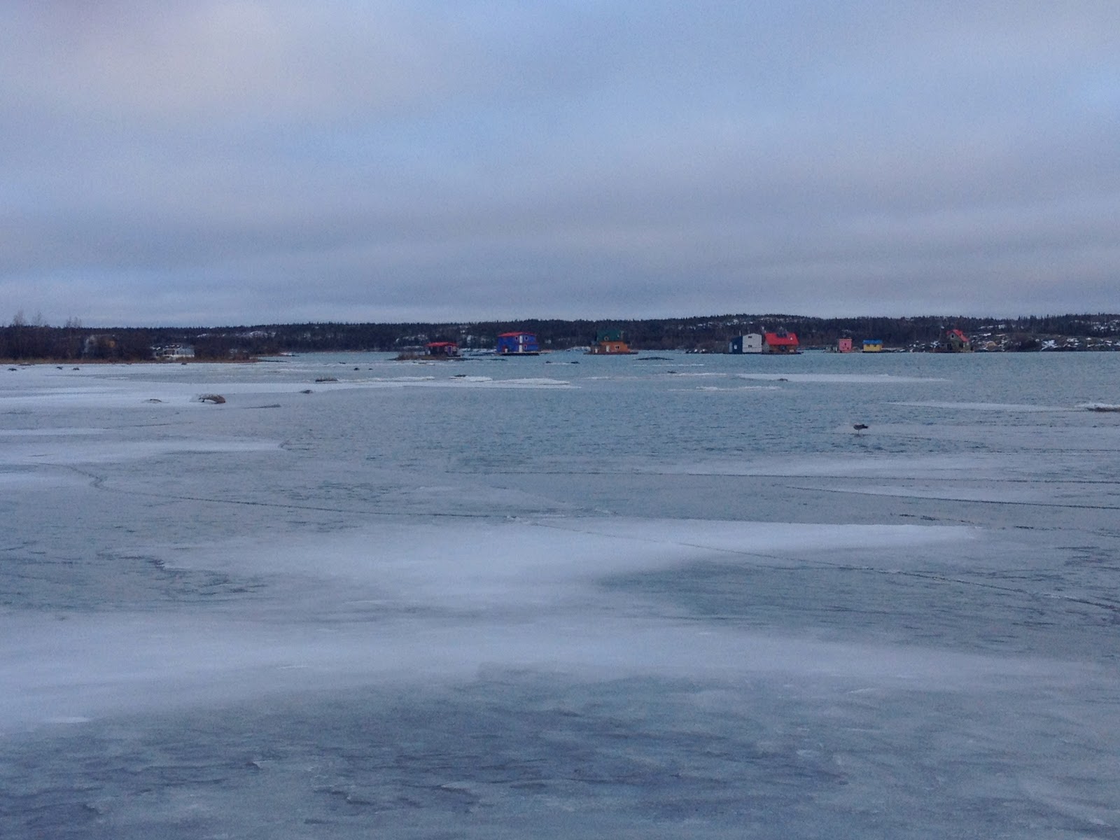 Pour le reste, nous commençons enfin à profiter de l’extérieur et à aller explorer les environs. Enfin, surtout le week-end, si on veut un peu de lumière. Il fait nuit à 16 h! Mais nous avons retrouvé le Grand lac des Esclaves, pas encore gelé, et ses maisons-bateaux.