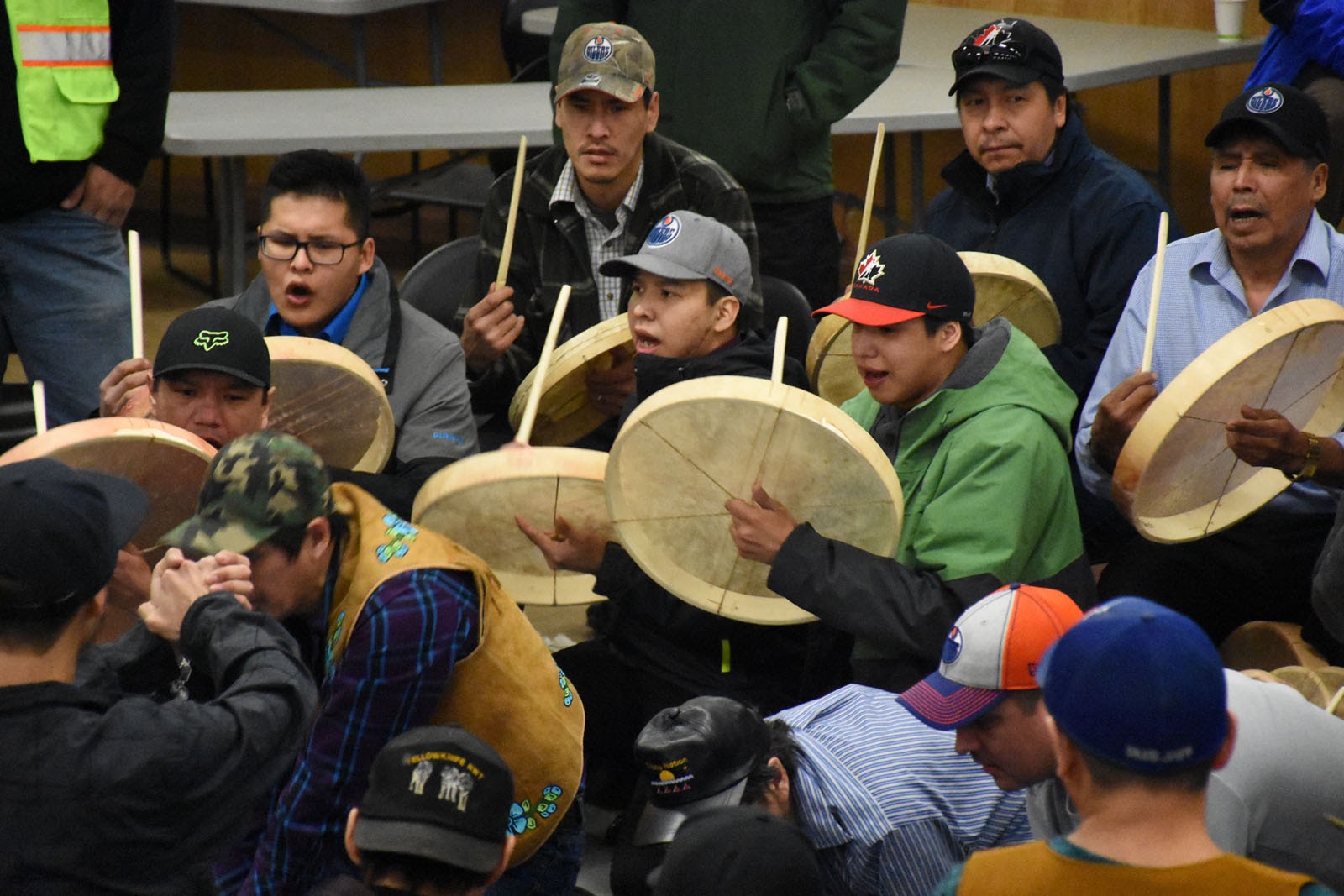 Mars était également le mois du concours annuel de jeux de mains organisé dans la collectivité autochtone Tłı̨chǫ de Behchokǫ̀, à une centaine de kilomètres de Yellowknife. Ce jeu en équipe, autrefois pratiqué entre chasseurs pour gagner des allumettes, des munitions ou des peaux d’animaux, consiste à faire deviner dans quelle main les adversaires ont caché un jeton. Encouragés par un groupe de joueurs de tambours traditionnels, les participants exécutent des mouvements de mains élaborés pour tromper leurs adversaires et arrêter le jeu. Aujourd’hui, il s’agit d’un événement auquel participent des équipes des Territoires du Nord-Ouest, du Yukon et du nord de l’Alberta, et qui leur permet de gagner… de l’argent. Et pas des petites sommes : 30 000 $ pour la première place! Cela a été une belle expérience pour nous. C’était la première fois que nous nous rendions dans une communauté autochtone, que nous assistions à un événement propre à leur culture, bien différent de ce que l’on veut bien nous montrer en ville. C’était vraiment intéressant de se retrouver en minorité là-bas, de se faire regarder parfois d’un œil bienveillant, parfois moins. Cela permet de remettre les choses en perspective et de réfléchir à la question autochtone au Canada. Vaste sujet dont on ne maîtrise pas grand-chose, mais très important néanmoins, car il occupe une très grande place tant sur le plan social que politique du pays. Tout un débat!