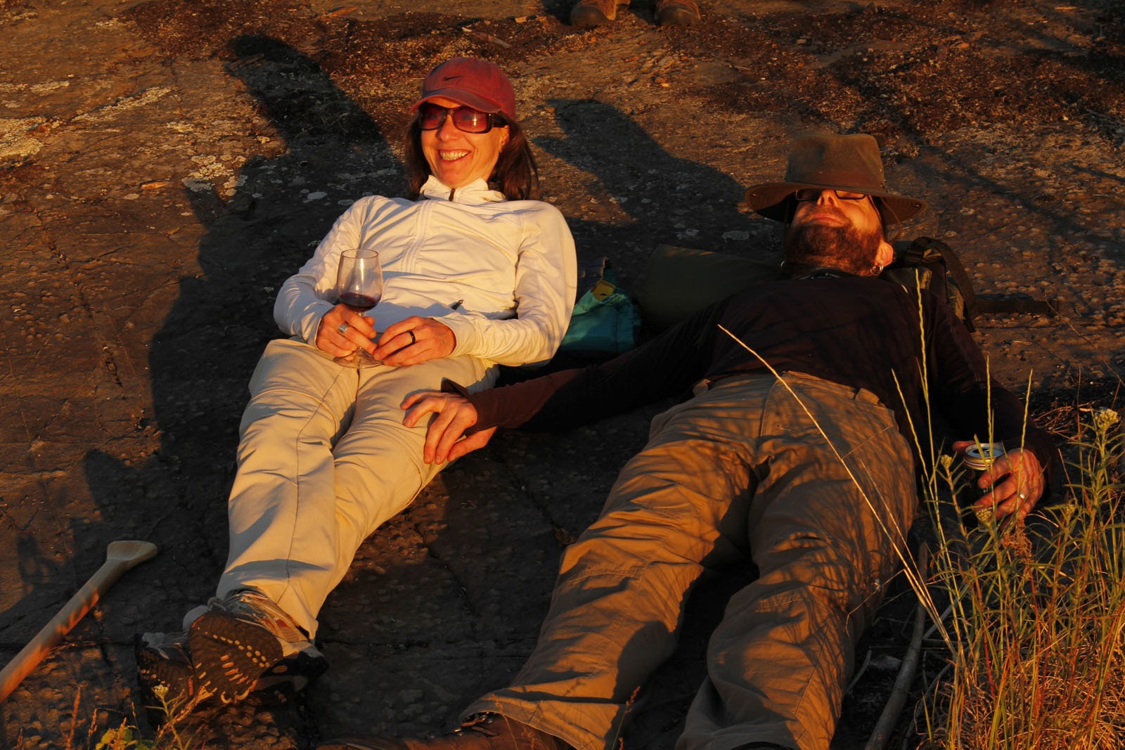 Arrivés de l’autre côté des rapides, nous avons planté la tente dans un endroit bourré de moustiques. La soirée fut tout de même agréable. Bien couverts et avec un abri moustiquaire, on peut profiter de la soirée!