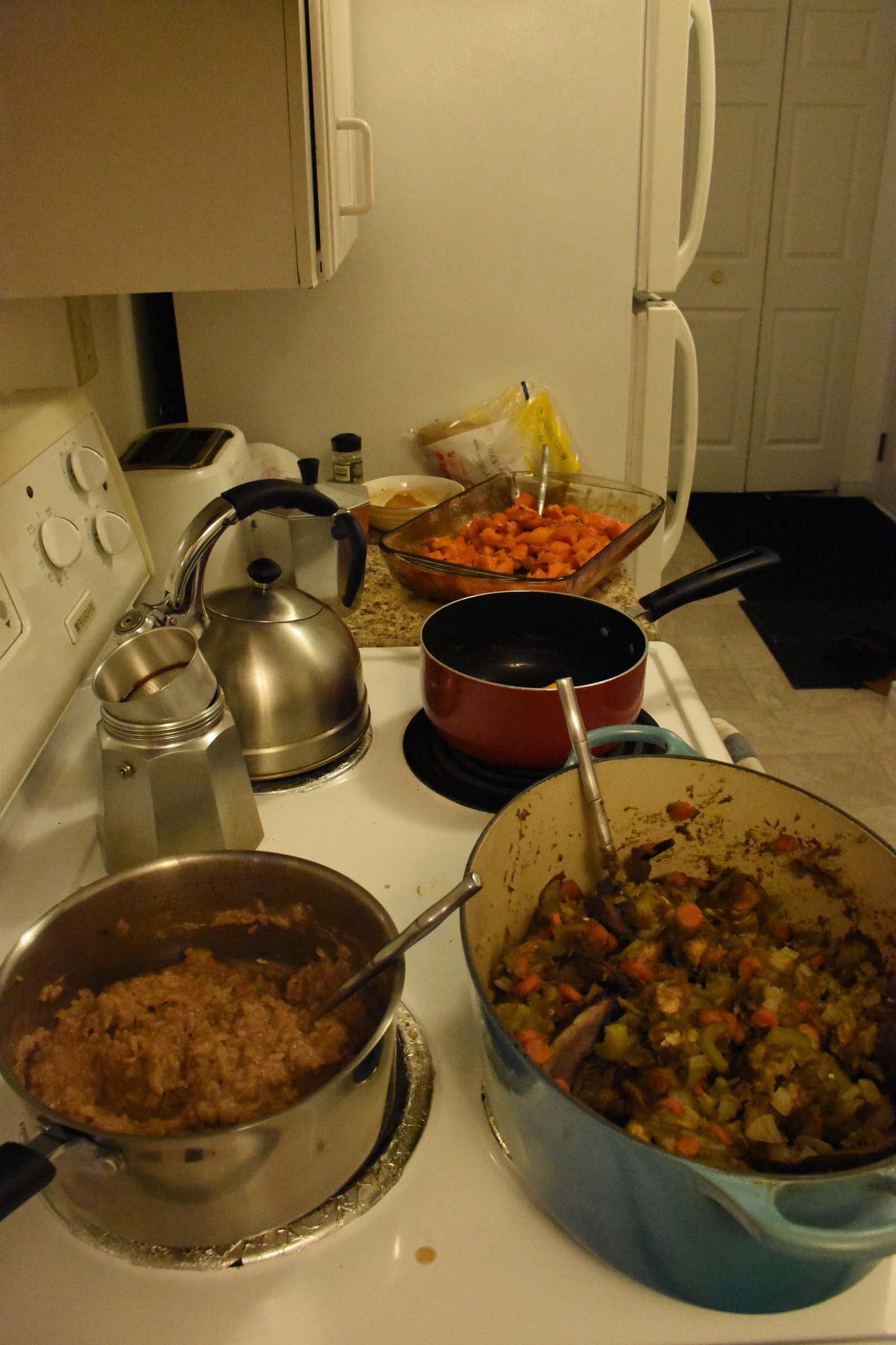 On a reçu une couchsurfeuse américaine, et comme c’était Thanksgiving aux États-Unis, elle nous a concocté le menu traditionnel (sans la dinde, bien sûr).