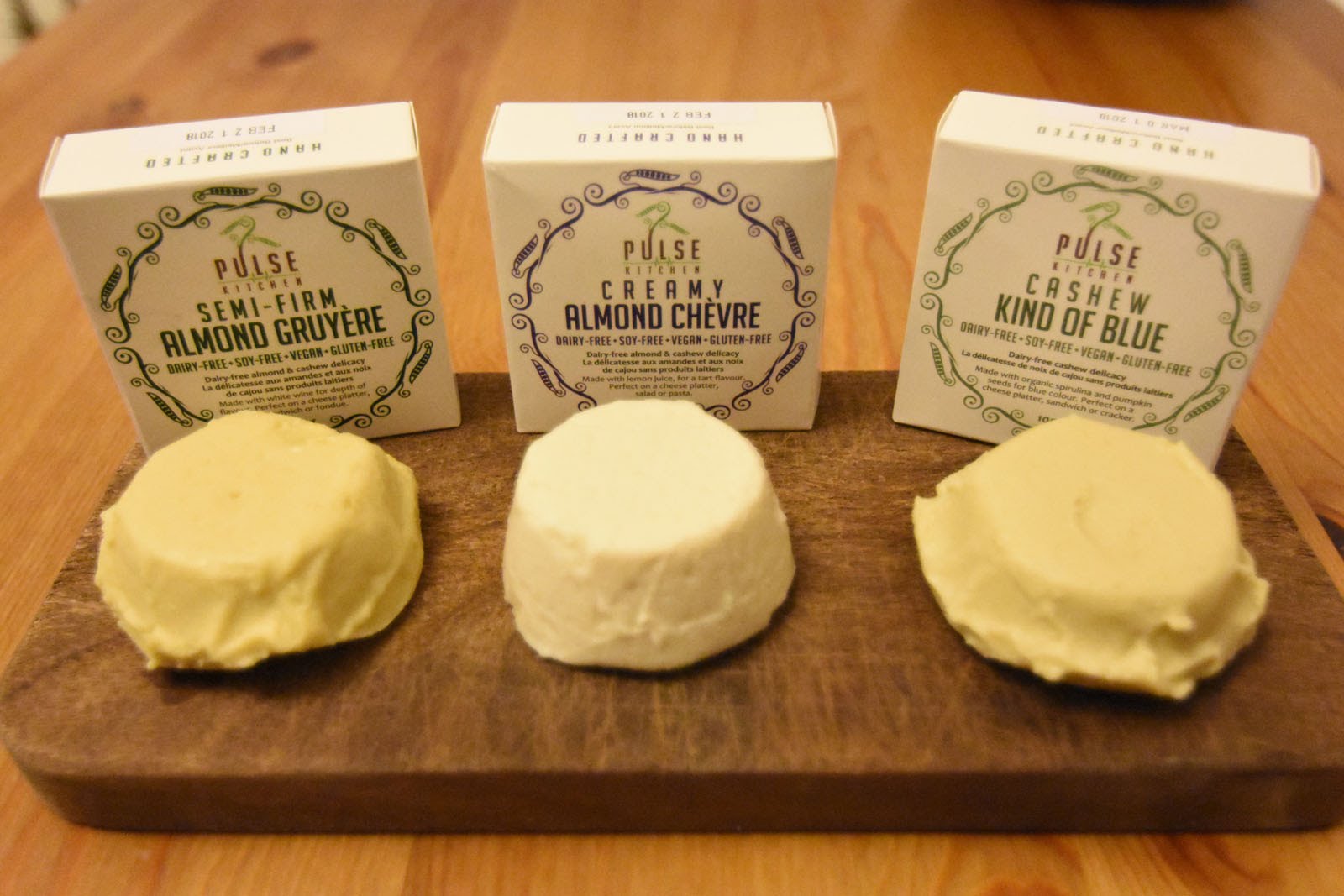 Puisqu’un repas sans fromage n’est pas un vrai repas, voici les « faux-mages ». Fabriqués à base de noix de cajou ou d’amandes, ces préparations mousseuses et sucrées aux saveurs diverses pourraient rappeler des fromages à tartiner. Bien sûr, il ne faut pas s’attendre à un goût de fromage. C’est impossible à reproduire avec des produits végétaux. Et pour tout dire, la première fois, c’est un peu déconcertant. On se dit que cela serait plus adapté à l’apéro, sur des toasts. Puis finalement, en y revenant, on aime ça. Ç’en devient presque addictif. Alors pour nous, oui, le résultat est concluant. Non non, s’il-vous-plaît, ne me lapidez pas. Il est clair que cela ne peut remplacer un camembert ou un Saint-Nectaire, un Roquefort ou un Reblochon. Mais si on aime les expériences et que l’on souhaite varier les saveurs, ça vaut le coup d’essayer.