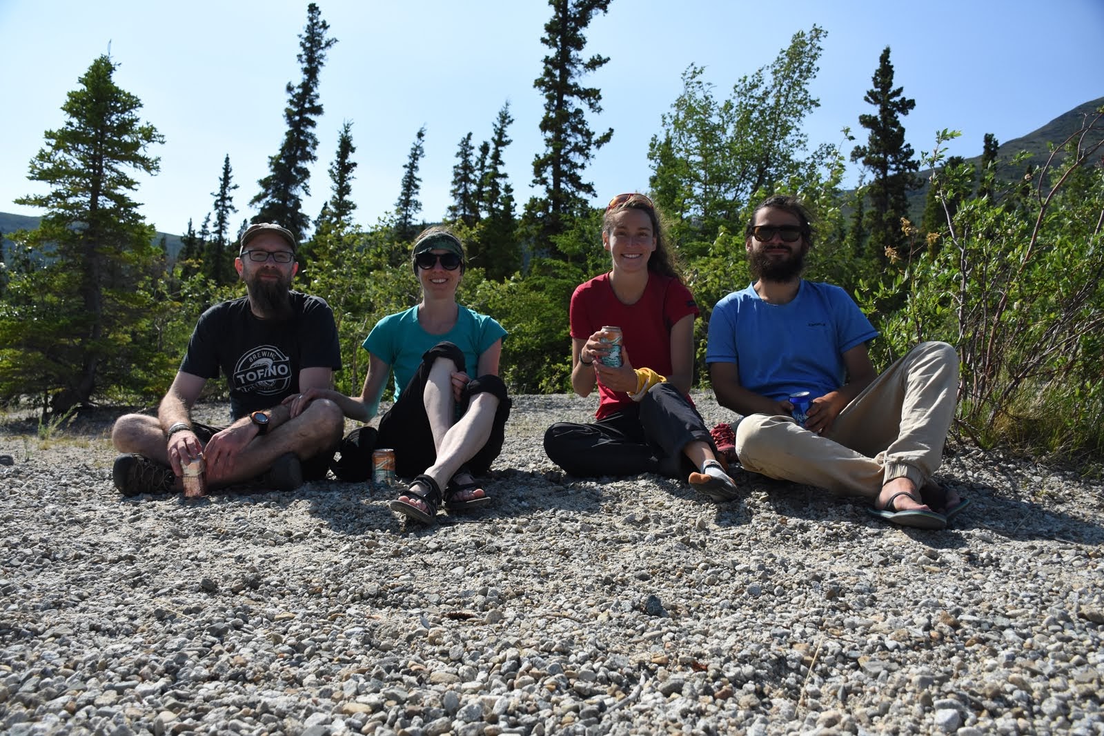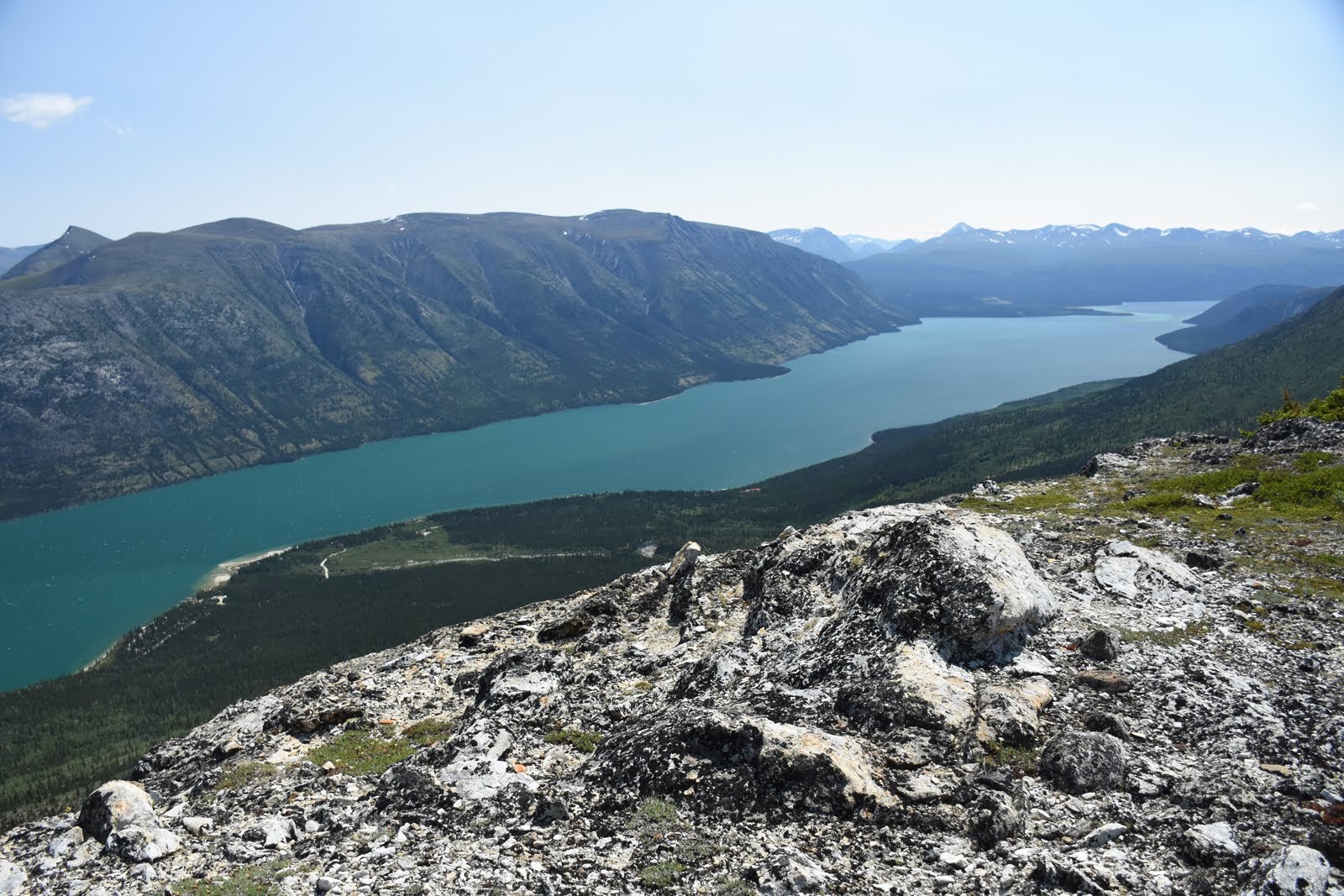 Et oui, nous l’avons retentée. La randonnée Kusawa Ridge, qui avait engendré une certaine frustration il y a quelques temps a été un succès cette fois-ci. Et cela, grâce à la nouvelle acquisition de Stéphane : un GPS! Un nouveau jouet électronique, mais qui s’avère bien utile au Yukon, où les sentiers existent mais ne sont pas très bien indiqués. Cette fois-ci, nous sommes parés. Nous voilà donc partis pour le camping Kusawa, que nous affectionnons, avec son lac émeraude – mais plutôt gris, cette fois-ci – et sa petite plage. Le programme n’est pas très différent de d’habitude : feu de camp, bière et repas. C et C ont tout de même apporté une petite nouveauté culinaire : les brochettes. Quelle bonne idée!