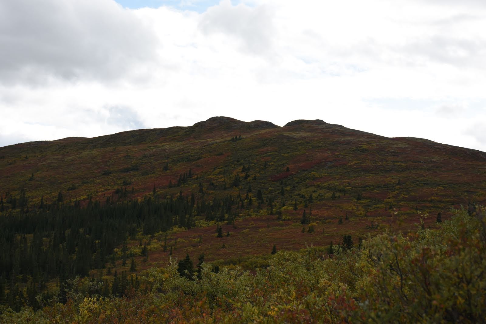 Direction Haines Junction à l’ouest de Whitehorse pour la randonnée The Tors. Comme d’habitude, ça grimpe, mais la vue au sommet en vaut la peine. Et les couleurs de l’automne commencent à se voir, c’est d’autant plus beau. Bien sûr, nous en avons profité pour faire un petit passage au café-boulangerie de la petite bourgade, avant de passer une agréable soirée au camping (mais le camping en question ne restera pas dans les annales : trop familial et bruyant pour nous, et pas assez d’intimité.