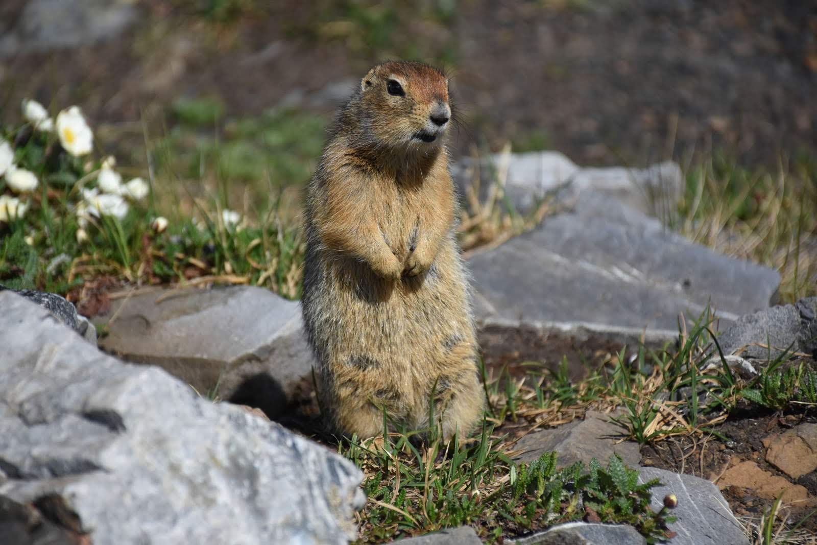Le lendemain, justement, le soleil est toujours là, ce qui est parfait pour notre programme : Grizzly Lake, la randonnée la plus prisée du parc (et l’une des seules accessibles à cette période de l’année puisqu’il y a encore de la neige par endroits). La distance n’est pas énorme, mais ça grimpe! Et en haut, quel spectacle! Vue sur l’emblématique mont qui a donné son nom au parc, et sur le lac Grizzly en contrebas. C’est magnifique!