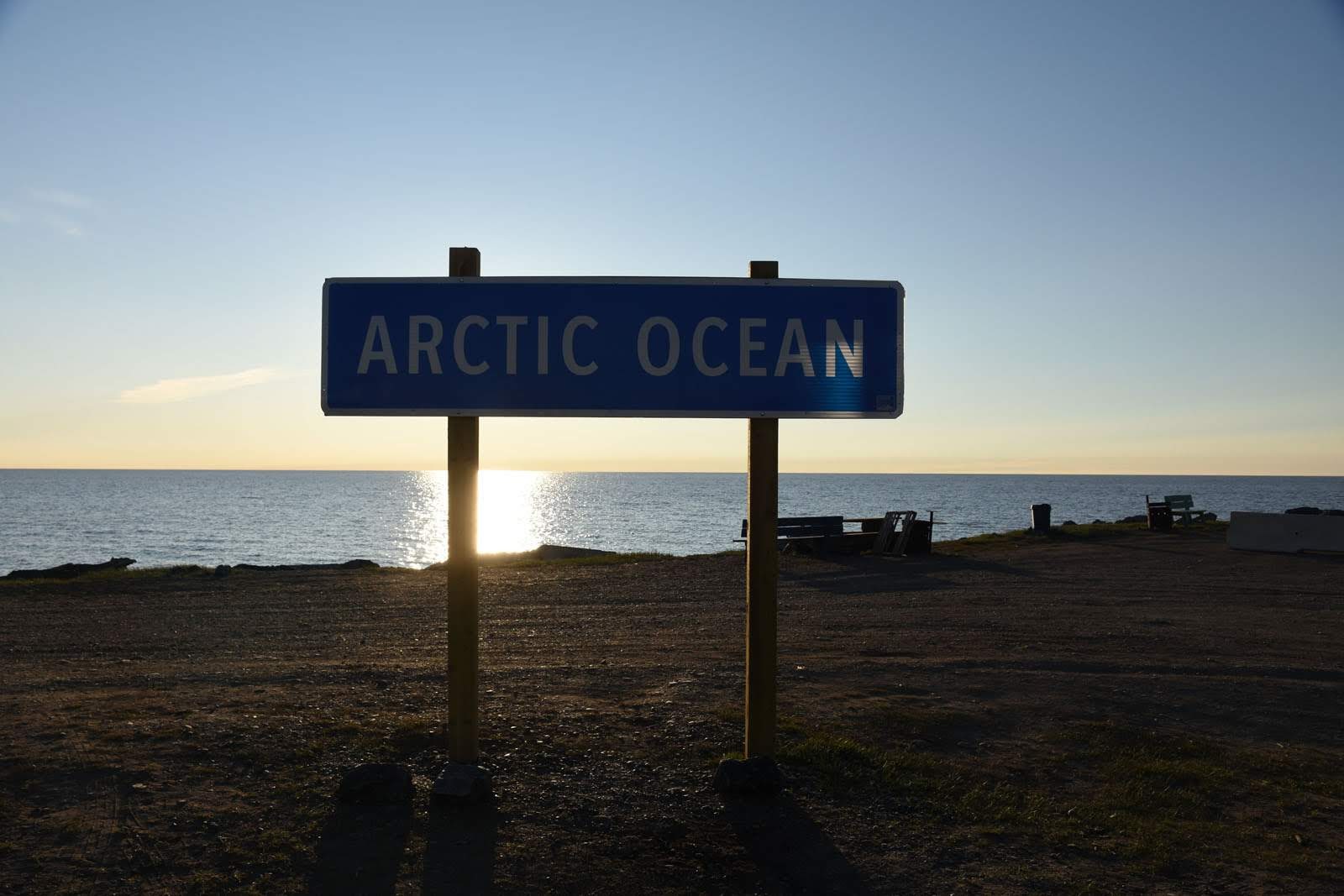 Après avoir passé le cercle Arctique, traversé la frontière des Territoires du Nord-Ouest et pris deux traversiers, nous arrivons à Inuvik, le bout de la route jusqu’à il y a presque deux ans, sous un ciel clair et ensoleillé. Mais nous, on continue. Une nouvelle route a en effet été construite et terminée en 2018, la Centennial Road (à l’occasion du 150e anniversaire du Canada), pour relier Inuvik à Tuktoyaktuk, notre destination finale, sur les rives de la mer de Beaufort. Auparavant, les gens de Tuk ne pouvaient se rendre à la ville que l’hiver par la route de glace. Autant dire qu’ils n’étaient pas nombreux à parcourir ces 150 km et que le village était comme qui dirait coupé du monde. Maintenant que cette route existe, elle est pas mal empruntée, en particulier par les touristes qui veulent tremper un orteil dans les eaux glacées de l’Arctique. Nous ne sommes donc pas seuls, même si – il ne faut rien exagérer – il n’y a pas foule quand même. Surtout à l’heure où nous nous nous y engageons : en partant à 21 h d’Inuvik, on s’assure quand même une certaine tranquillité. Et toute une aventure. La route, qui semble au départ plutôt en bon état, s’avère être l’une des pires routes de gravelle que nous ayons jamais empruntée. Et ce soleil qui nous éclaire comme en plein jour devient vite un handicap, parce que même s’il ne se couche pas, il descend et les pare-soleil ne servent bientôt plus à rien. En revanche, les paysages sont incroyables et indescriptibles. Les photos donnent bien une idée, mais elles ne peuvent transmettre toutes les émotions que nous avons pu ressentir en admirant ce qui nous entourait. Enfin, à 23 h 30, épuisés, nous arrivons devant l’emblématique panneau : Arctic Ocean, le plus au Nord que nous irons jamais. Et on ne nous a pas menti, il ne fait pas nuit.