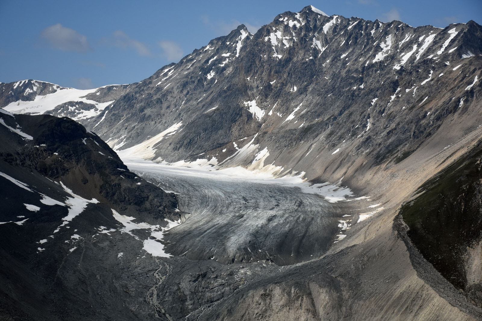 Le lendemain, on lève le camp vite fait. Ou plutôt, on se fait chasser par ces maudites bestioles ailées (vous devez en avoir marre, alors promis, j’arrête d’en parler). Aujourd’hui, on doit se rendre à la frontière de la Colombie-Britannique pour dormir au dernier camping territorial et nous rapprocher du sentier de randonnée Samuel Glacier. Pas grand-chose d’intéressant, le plus gros événement de la journée étant que nous avons appris qu’à Haines Junction, il n’y a pas de lave-auto. Impossible de rendre Étienne à peu près présentable. On s’en occupera au prochain arrêt. En attendant, on va marcher! Une vingtaine de kilomètres aller-retour pour une magnifique vue : ça valait la peine.