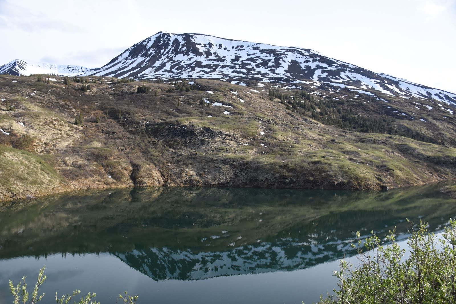 Long week-end du solstice, direction Nahanni Range Road. Cette route-là, en gravier, nous avait déjà tapé dans l’œil sur la carte avant notre arrivée, lorsque nous découvrions le Yukon sur la papier. En effet, c’est la route qui permet d’accéder au parc Nahanni, qui nous laissait rêveurs lorsque nous étions aux Territoires du Nord-Ouest, car nous le savions inaccessible (https://www.pc.gc.ca/fr/pn-np/nt/nahanni/info). Nous avions vu qu’un chemin menait sur le territoire du parc par le Yukon. Nous savions aussi qu’il ne nous permettrait pas d’entrer dans le parc, parce qu’il mène à une mine, à Tungsten (une mine de… tungstène, ha ha). Mais c’était l’occasion d’aller admirer les magnifiques paysages de la région, et de retourner aux T.N.-O. par la même occasion, puisque la route se termine de l’autre côté de la frontière. Nous avons donc profité de ces quelques jours pour aller voir du pays. Étienne en a pris plein les roues, et nous… plein les yeux!