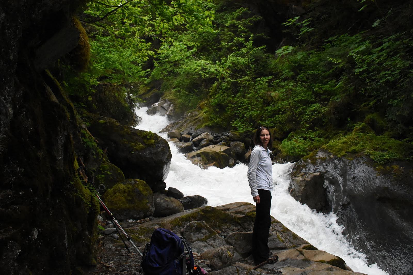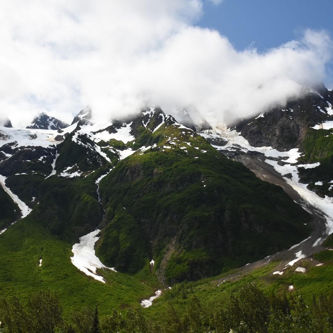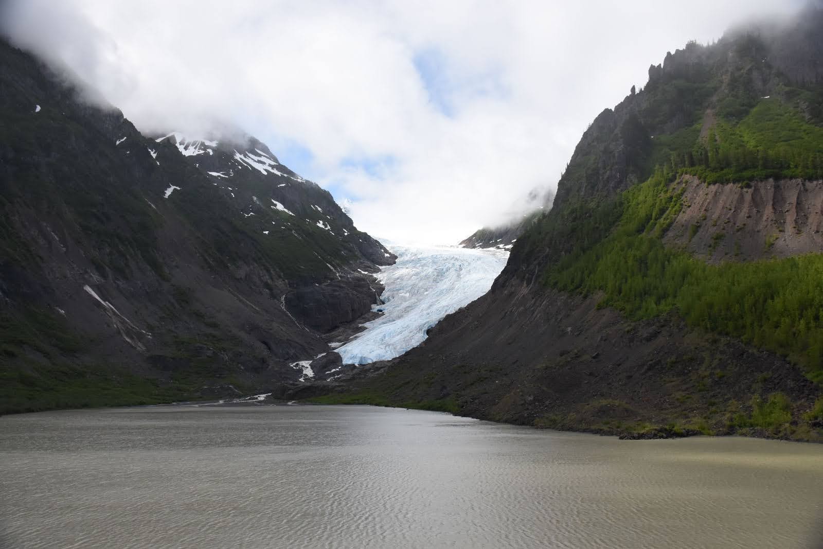 Notre coup de cœur a en effet été Stewart, petite ville minière qui peine elle aussi à recevoir son lot de touristes cette année (l’expérience n’en est que plus plaisante pour nous, avouons-le). La route menant à la bourgade est magnifique, bordée de montagnes vertes, de glaciers et d’innombrables chutes d’eau. Un peu difficiles à admirer à l’aller sous les nuages, mais bien mieux à notre retour. Seule déception : la ville est à la frontière américaine. À quelques kilomètres de là, on entre à Hyder, village d’Alaska de 40 habitants. Il n’y a probablement pas grand-chose à y faire, mais c’est par cette route que l’on accède au soi-disant incroyable Salmon Glacier. Nous n’avons malheureusement pas eu la chance d’aller le vérifier puisque le passage de la frontière nous était interdit.