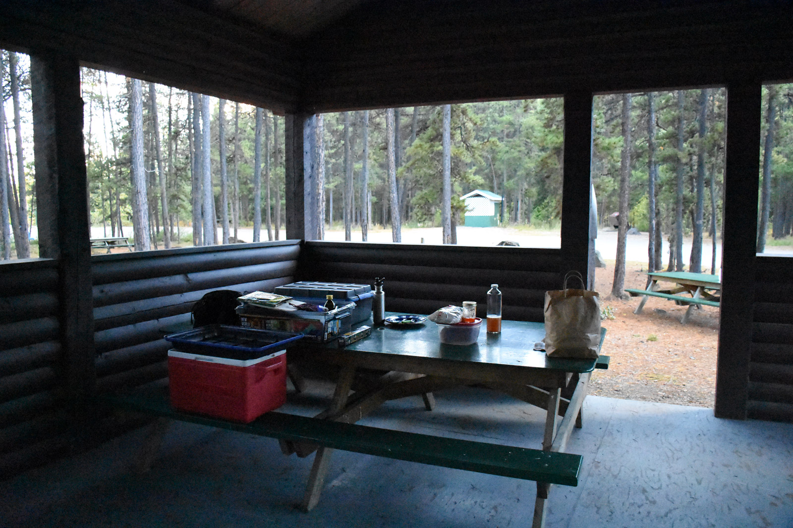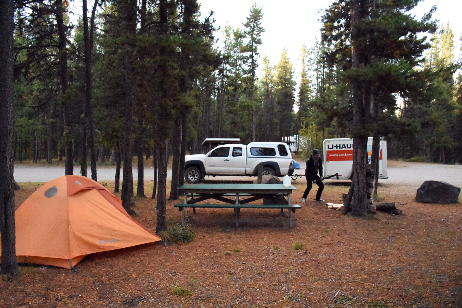 Alors bon, on ne s’est pas jeté dans le vide tout de suite, on a pris ça plutôt tranquille : premier arrêt à Watson Lake, histoire d’éviter tout changement trop radical. La Colombie-Britannique, ce sera pour demain. En attendant, nous campons une dernière fois au Yukon, presque seuls (même pas de moustiques, dites donc) et sans pluie (si si, finalement, c’était possible).