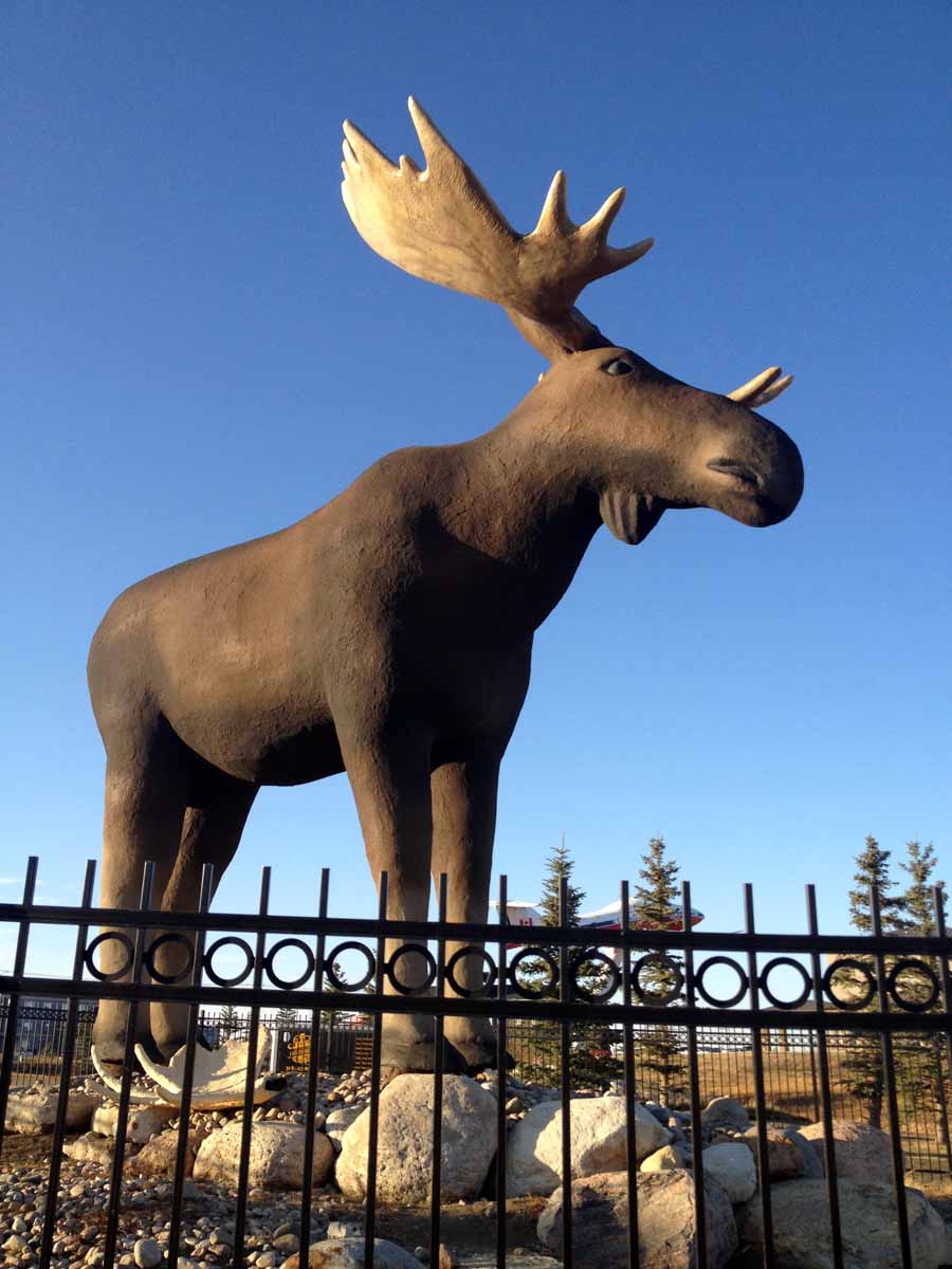 Notre seul arrêt aura été à Moose Jaw. On ne voulait pas manquer la curiosité de la ville: Mac l’orignal! Nous l’avions manqué lors de notre dernier passage, étant arrivés de nuit. Saviez-vous que la Norvège et le Canada se battent pour le titre de plus gros orignal du monde. En 2015, après 31 années de règne, Mac a perdu son titre face à Storelgen, The Big Elk, le dépassant de 50 cm. Les norvégiens apprendront à leurs dépens qu’il y a certaines choses que l’on ne peut pas faire aux Canadiens. Il faudra quatre années à Mac pour reconquérir ce titre et ce grâce à un plus grand panache de bois installé en 2019, clouant ainsi le bec des norvégiens. Jusqu’à quand?