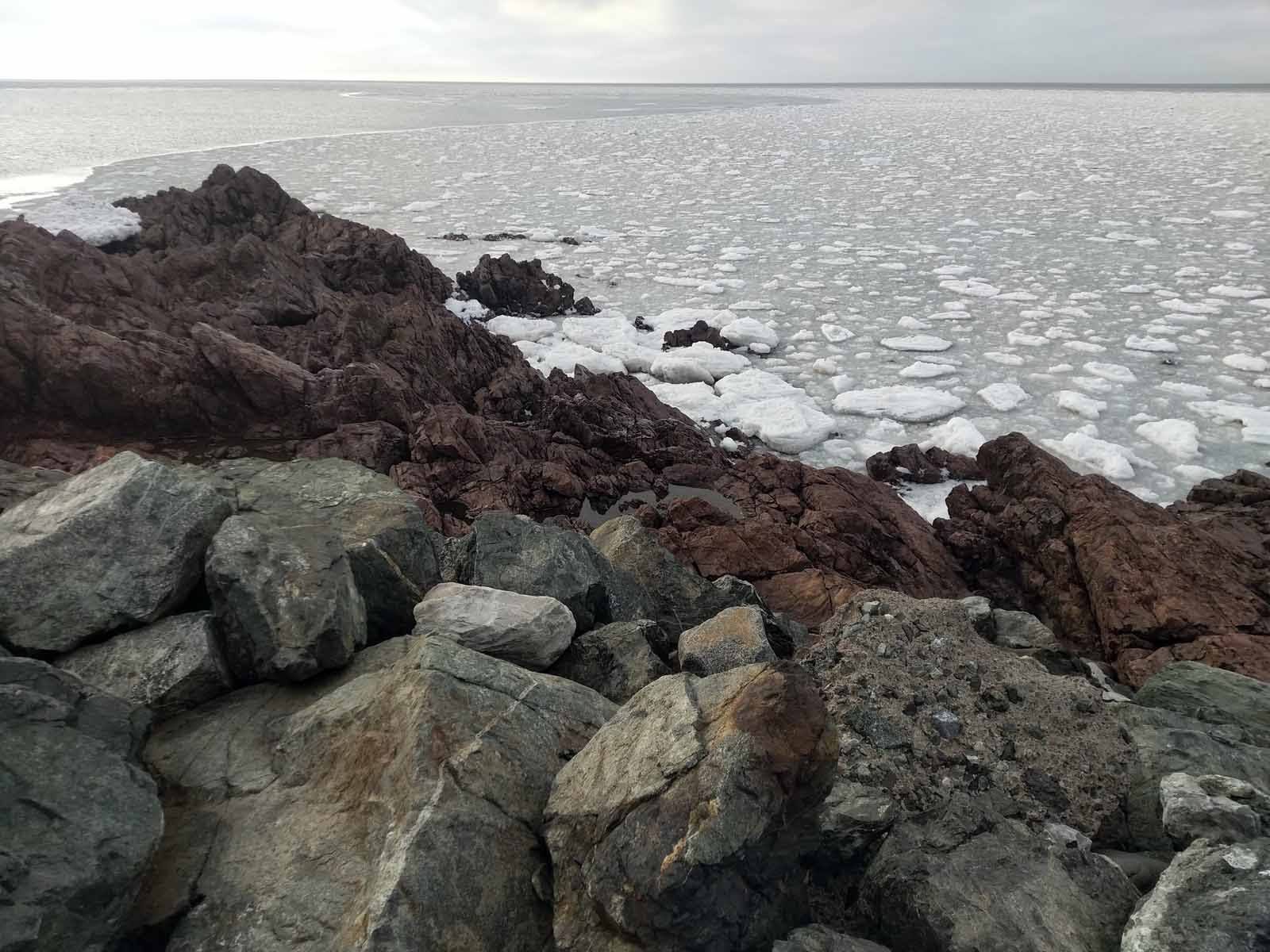 La semaine dernière, nous étions en travail-vacances à Antigonish, une ville universitaire située sur la côte de Northumberland où se trouvent les plages les plus chaudes du Canada Atlantique. Autant dire qu’en Mars, le tourisme balnéaire est au plus creux, les plages sont vides de serviettes et de gens se dorant la couenne sous le soleil de Nouvelle-Écosse. Pour autant, cela n’enlève rien au charme de ces longues plages sur lesquelles il fait bon marcher et sentir le sable gelé craquer sous l’empreinte de nos pieds.