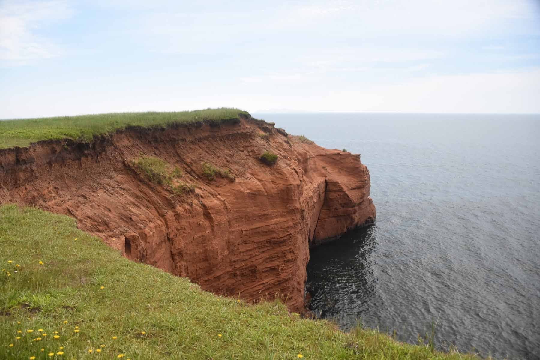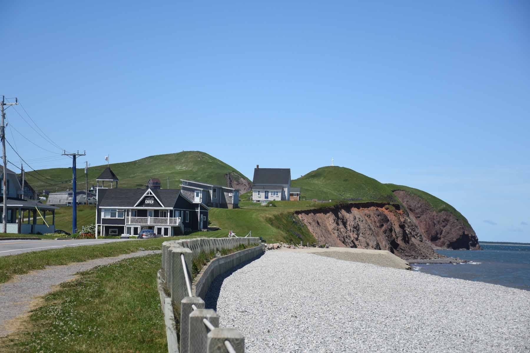 Le lendemain, nous avons exploré l’île du Cap-aux-Meules et découvert ses magnifiques paysages : falaises rouges recouvertes d’herbe verte, phares rouge et blanc surplombant l’océan turquoise et maisonnettes (ou manoirs, selon le cas) installés en haut des collines, nous en prenons plein la vue en nous perdant au gré des chemins plus ou moins balisés. C’est après une journée bien remplie que nous regagnons nos pénates, fourbus mais contents. Nous ne tardons pas à aller nous coucher, car la « bonne » surprise ici, c’est que ce n’est pas plat. Nous avons eu notre lot de grimpettes, et même si nous n’avons parcouru qu’une cinquantaine de kilomètres, nos jambes les ont bien sentis. De toute façon, l’idée de traîner dehors ne nous enchante pas : les satanés moustiques nous ont rattrapés. La pause n’aura été que de courte durée.