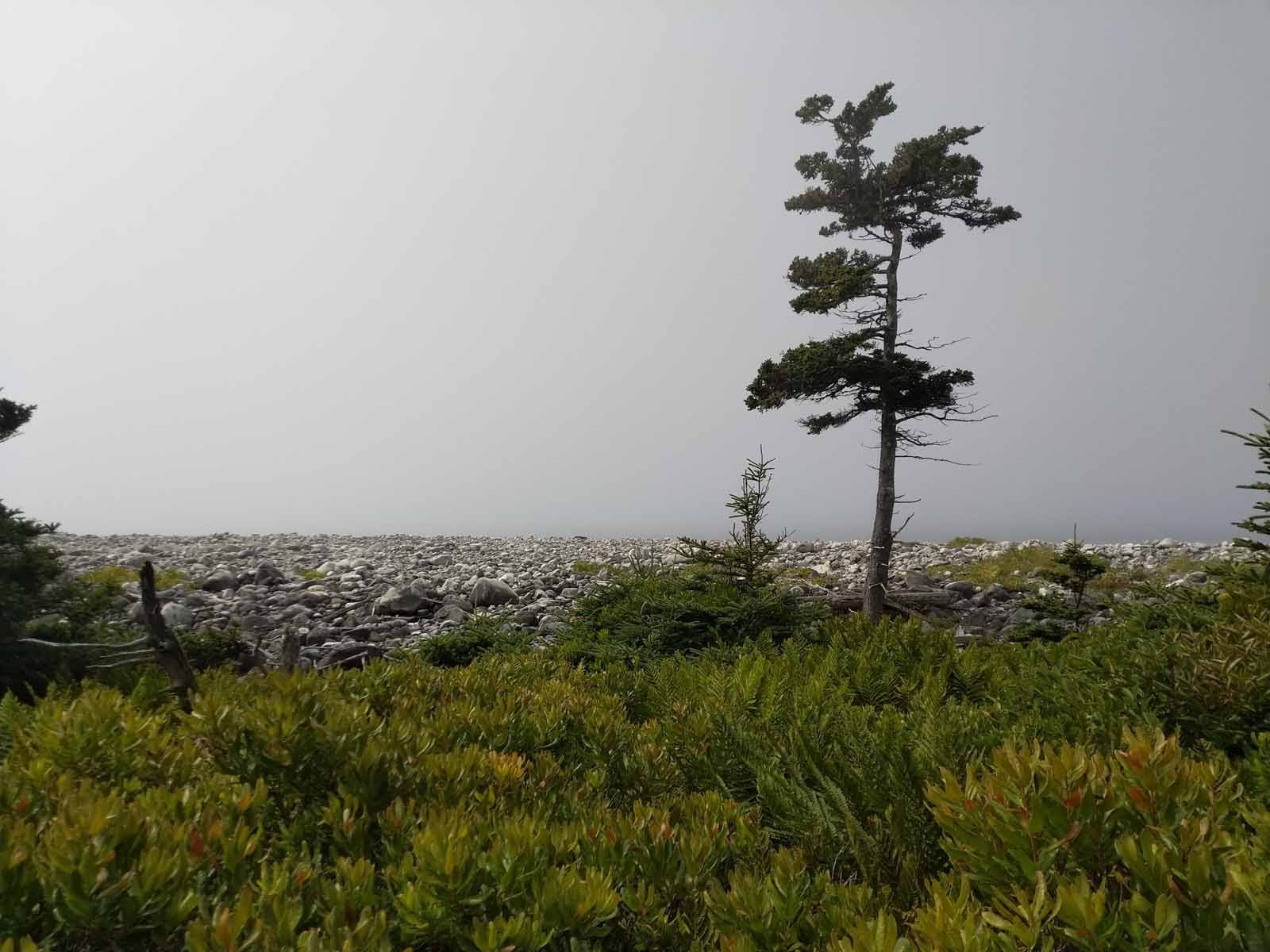 Le lendemain matin, nous voilà sur les lieux. Le sentier traverse d’bord un petit boisé puis s’enfonce à travers une tourbière. La flore y est abondante. Il y avait des orchidées sauvages partout, des baies,du thé du Labrador et cela faisait longtemps mais nous avons revu le fameux panneau CAUTION Bear in area. Nous étions contents de retrouver ce signe!