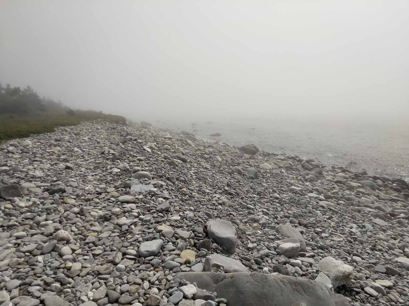 Après quelques kilomètres, nous longions enfin le littoral. Une brume légère s’était installée en bord de mer avec la marée haute mais elle s’est finalement assez vite dissipée pour laisser place aux paysages maritimes de Kejimkujik: rochers, plages de galets, plages de sable fin, mouettes plongeant dans l’eau et phoques se dorant la couenne sous le soleil. Nous avons donc fait comme ces derniers. Après le pique-nique, nous avons pris possession d’un rocher qui nous semblait assez plat et avons fait une sieste bien agréable avant de reprendre la route pour Digby.
