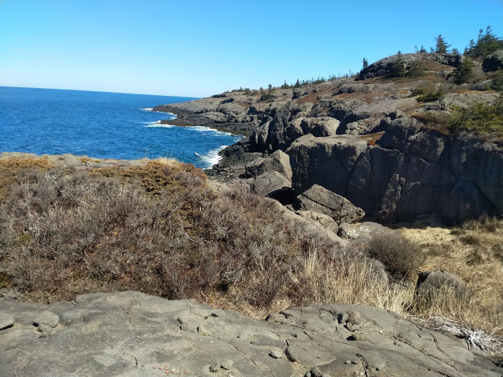 Nous sommes allés explorer les environs de Digby, il parait que le littoral du Digby Neck est un endroit rêvé pour le bouldering. On en apprend tous les jours. Nous sommes donc allés nous promener à Tommy’s Branch, un endroit où les aficionados d’escalade vont se râper les mains en été.